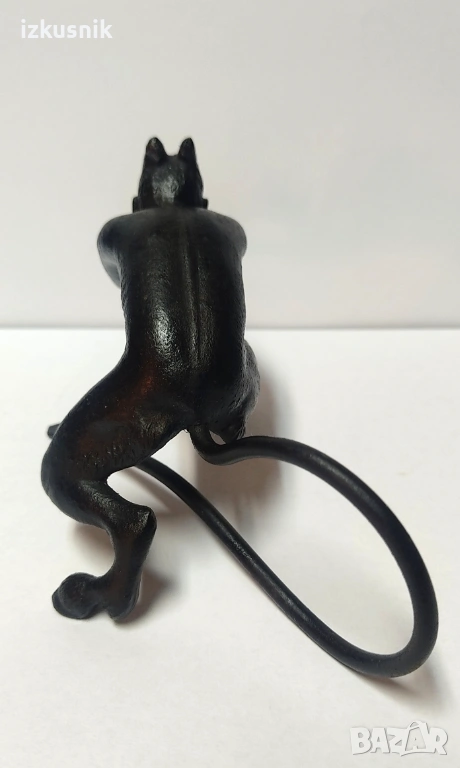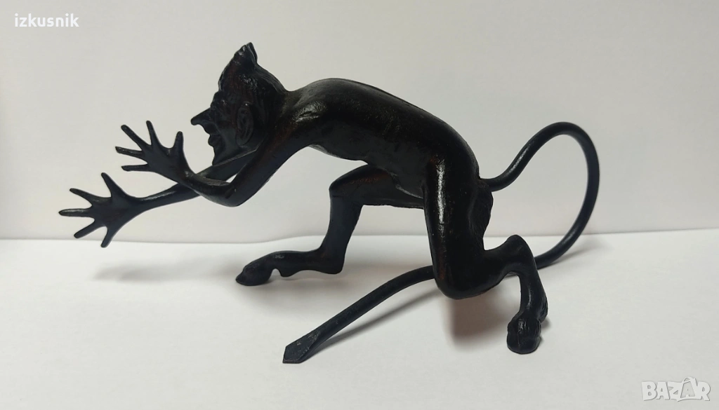 Това е една от добре известните фигурки, наричани "Дяволчето от Касли" (Kasli devil). Тези закачливи дяволи са направени от чугун и са характерни за Каслинското художествено леене на метали (Kasli art casting), производствена техника, възникнала в Уралския регион на Русия през 18-ти и 19-ти век.