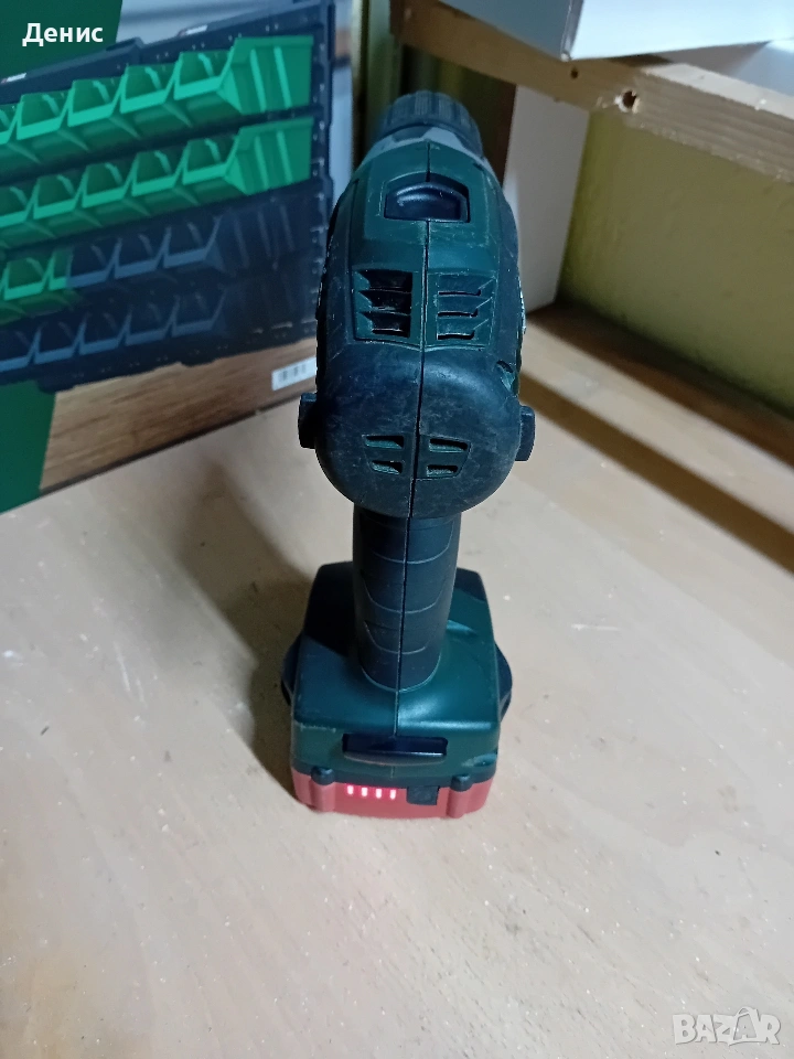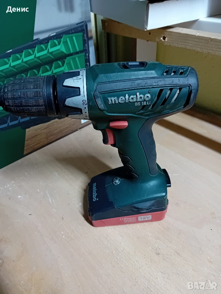 Винтоверт И Батерия Metabo bs 18v машината е с минимални следи от употреба работи перфектно без шумове в комплект с батерия без зарядно