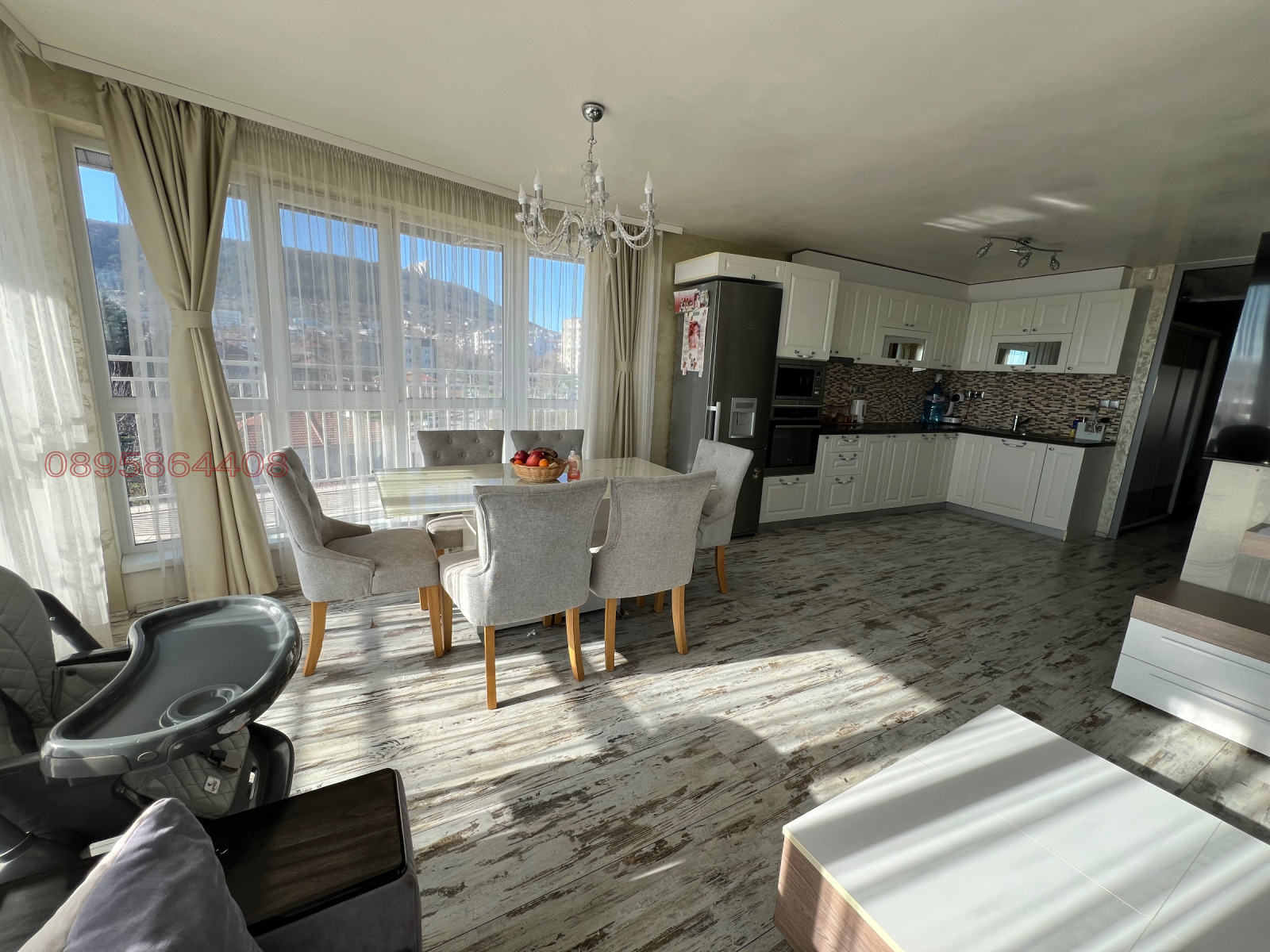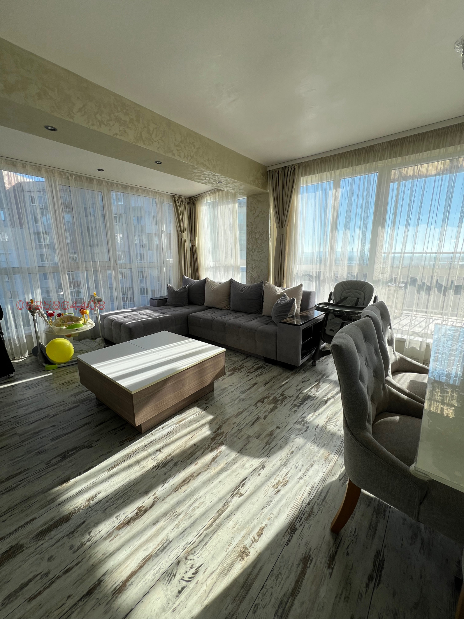 Продавам просторен, светъл, широк и напълно обзаведен тристаен апартамент с площ от 94 кв.м, разположен на 4-ти етаж. Имотът е в отлично състояние и е готов за нанасяне, без нужда от допълнителни ремонти.
