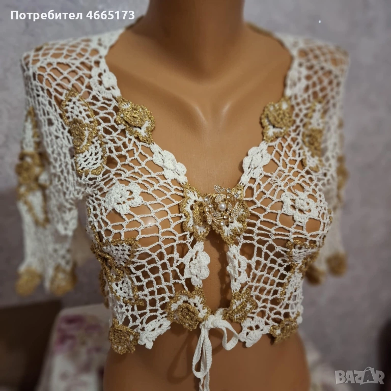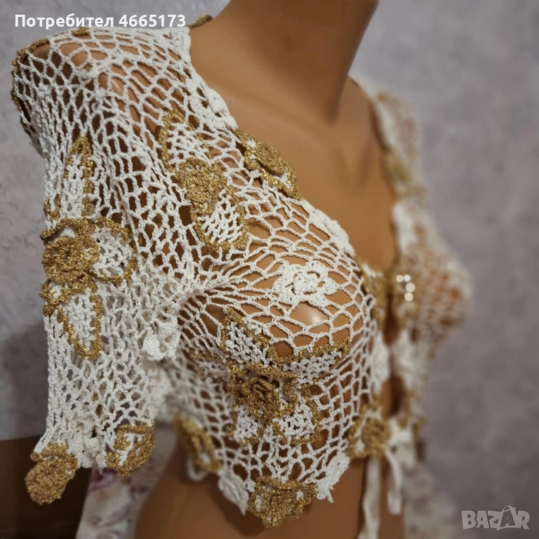 Красиво болеро в бял и златист цвят