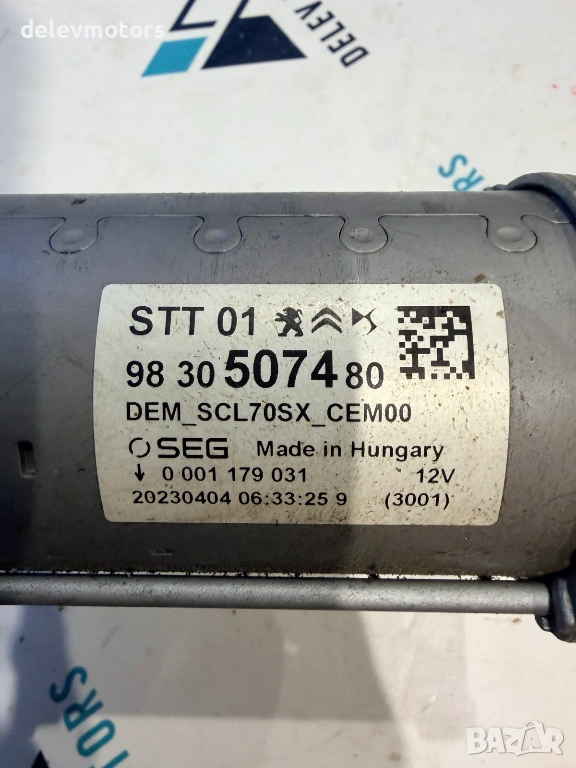 9830507480 стартер от Opel Mokka 1.2i автоматик, 131 кс., двигател HNS, F12XHT (EB2ADTS), 2023, 10700 km, Опел Мока 1.2 automatic, 131кс., engine HNS, F12XHT (EB2ADTS), 2023 г., euro 6D в автоморга Delev Motors, между с. Каменар и с. Куманово гр. Варна.