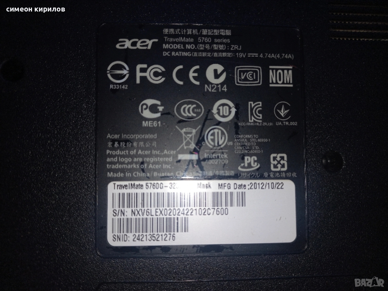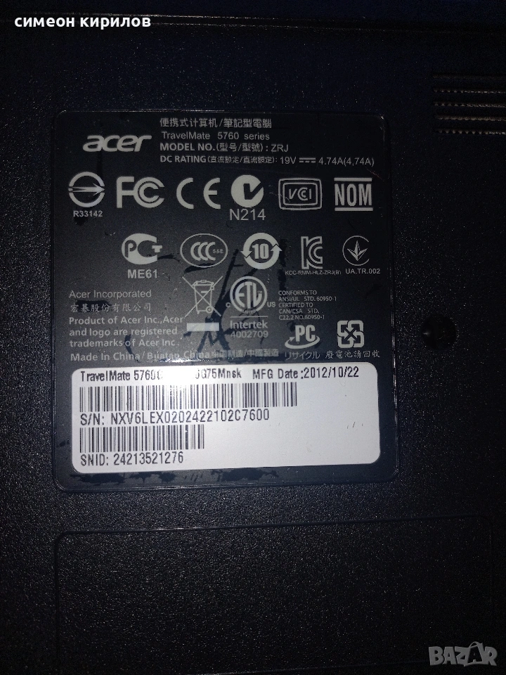 Продавам Лаптоп Acer → Обява 53418210