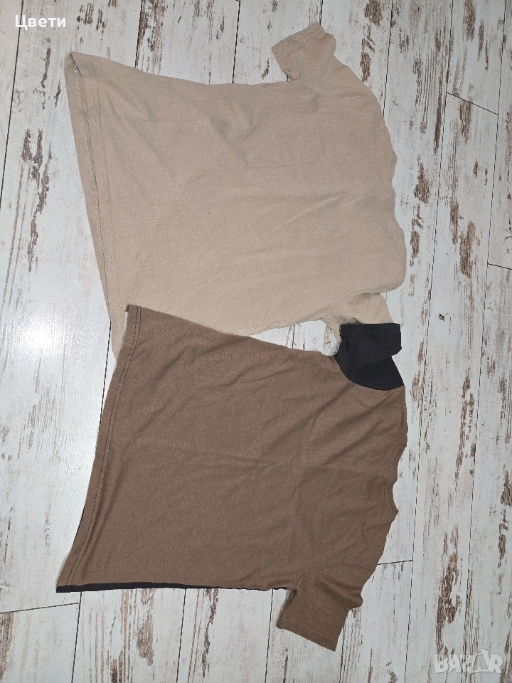 Четири употребявани тениски с къси ръкави в различни цветове. Размерът им е между 146 и 152 сантиметра. Цената е за целия лот