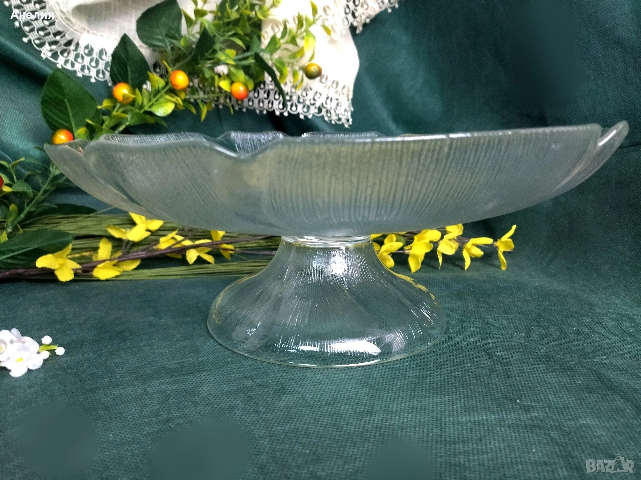 🌹🎂Голяма тортиера или фруктиера с релефни цветя.