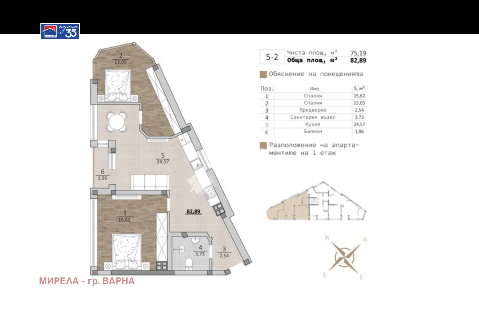 Апартаментът впечатлява с добре обмислено разпределение и големи прозорци, които осигуряват много естествена светлина и комфорт.