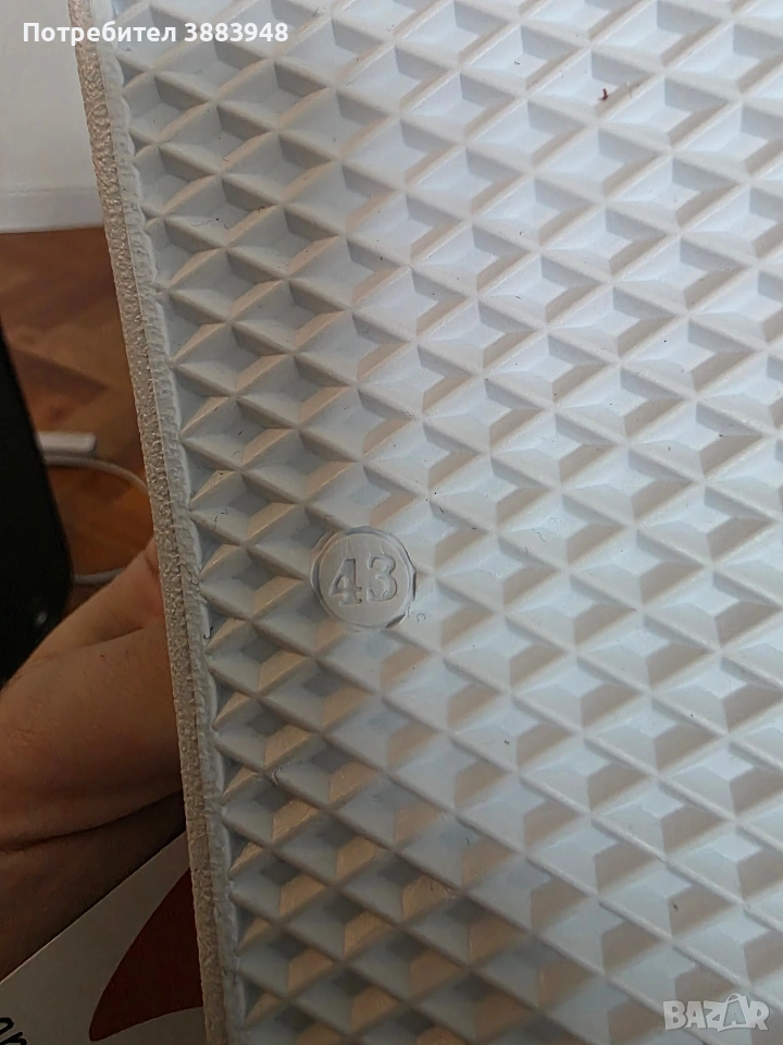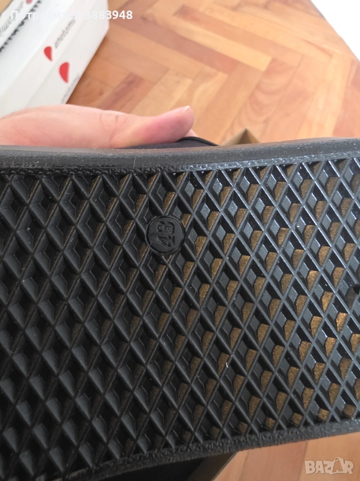 Боси обувки. Базов модел. Едни черни и едни бели. Черните имат нещо като брокат. Аз съм 44 номер нормални обувки и тези са ми много малки. Може би ще ви станат, ако носите 42 нормални, но не съм сигурен. 15 евро на чифт. Продават се и по отделно.
