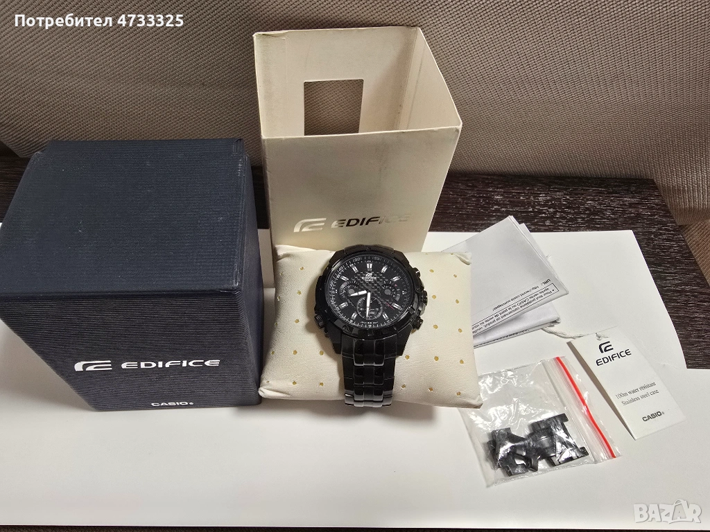 Продавам мъжки хронограф Casio Edifice. Часовникът е в отлично състояние, с нормални следи от употреба. Изключително стилен и надежден модел, подходящ както за ежедневието, така и за по-официални поводи.