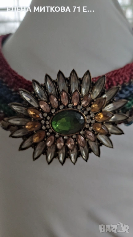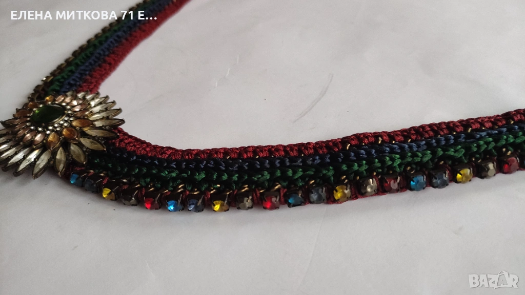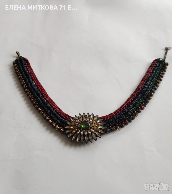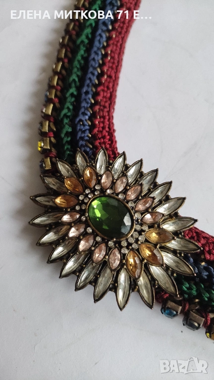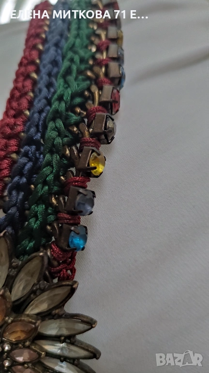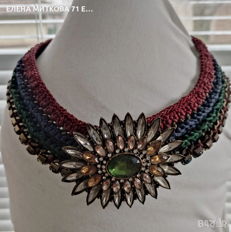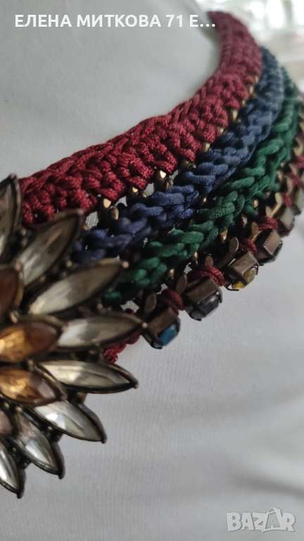 Масивно колие на ZARA с цветни кристали и ръчно изплетена яка върху метална основа → Обява 53419537