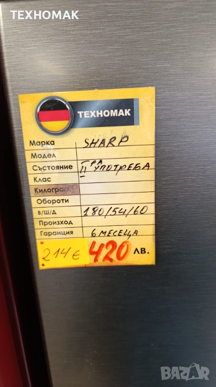 Хладилник с фризер SHARP височина 180 см. ширина 54см. дълбочина 60см. внесен от Германия. Работи перфектно. Минал преглед и профилактика. Цена с 6 месеца гаранция 214 euro. Разгледайте и другите мой обяви. Адрес Гр. Варна квартал Владиславово до кметство Владиславово