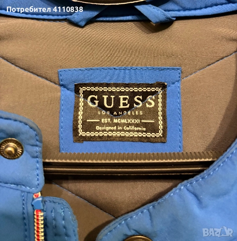 Мъжко оригинално яке на Guess. В син цвят супер запазено. Размер L