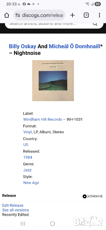 Billy Oskay And Mīcheāl Ō Domhnaill ‎– Nightnoise Издание 🇺🇸 USA 1984г Стил:JAZZ,New Age Състояние → Обява 53419638