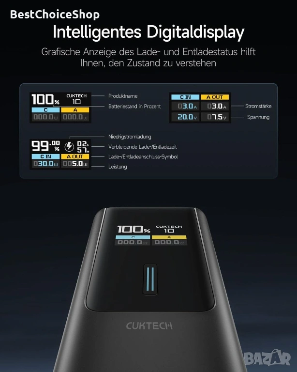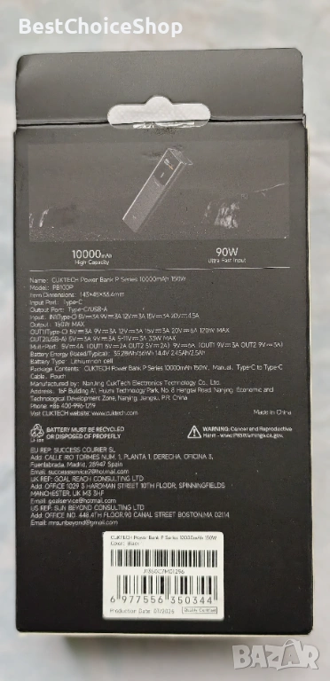 Продавам CUKTECH Power Bank P Series 10000mAh 150W (модел PB100P). Компактен, но изключително мощен външен акумулатор с поддръжка на до 150W изход и 90W вход за бързо презареждане.