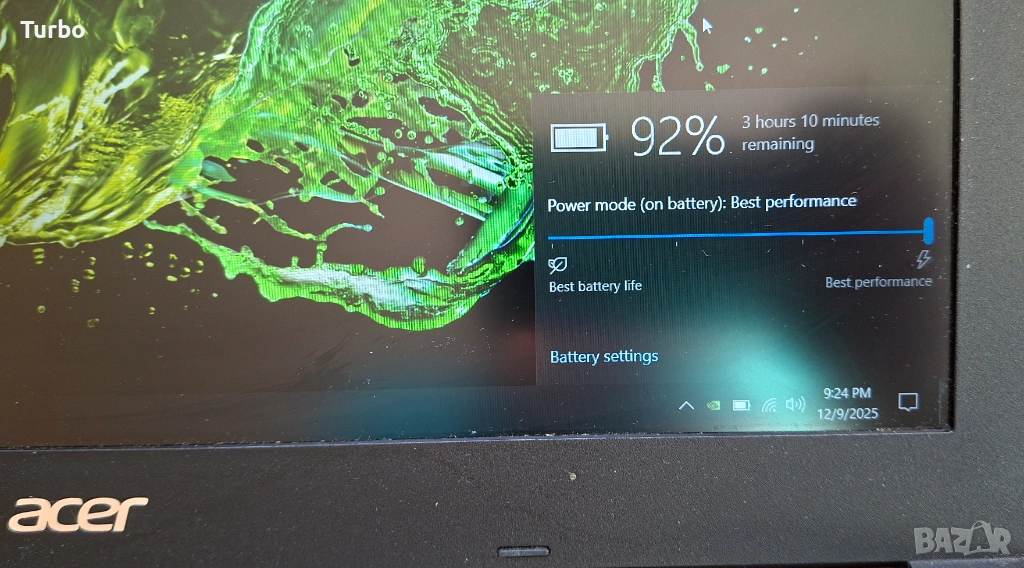 Батерията издържа до 3 часа. Инсталиран лицензиран Windows 10 Pro на SSD-то, готов за употреба. Технология Acer CoolBoost и големите изпускателни отвори от задната страна на лаптопа осигуряват отлични температури на процесора и видеокартата.