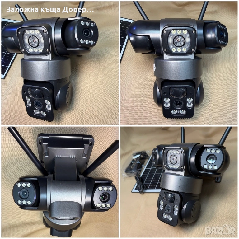 Последен модел 2026 LYLU четворна соларна камера със сим карта 4 x 12 mpx реално високоскоростно 4G sim !! На много камери пише “4G” но са 2 или 3 G !!
