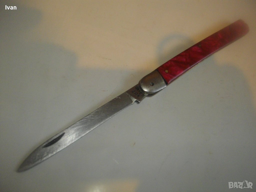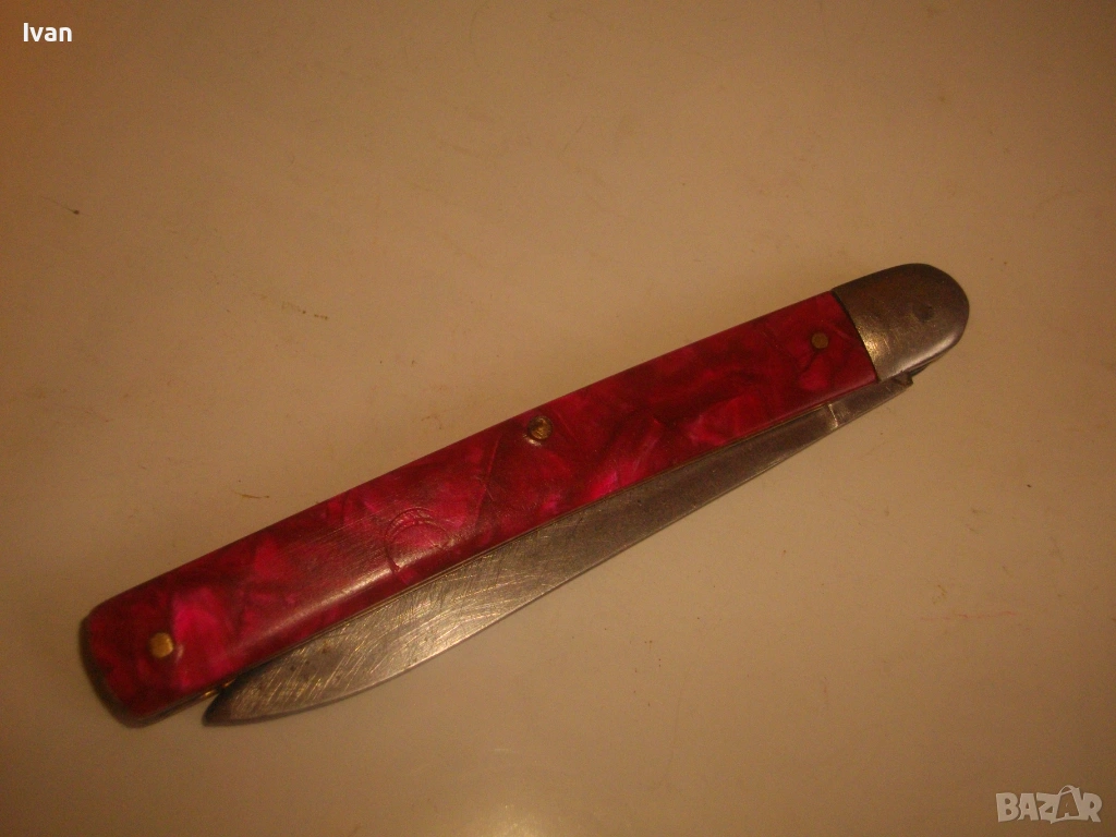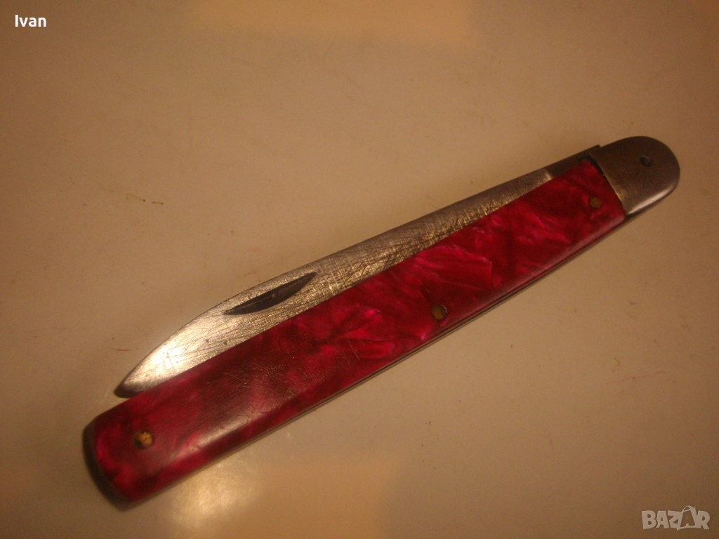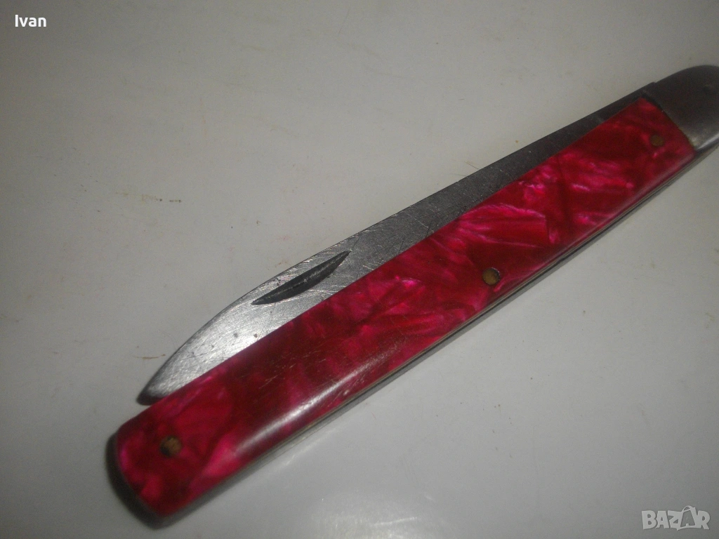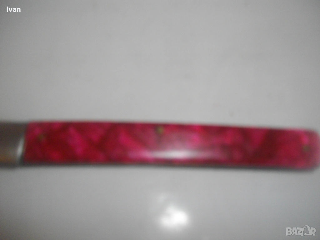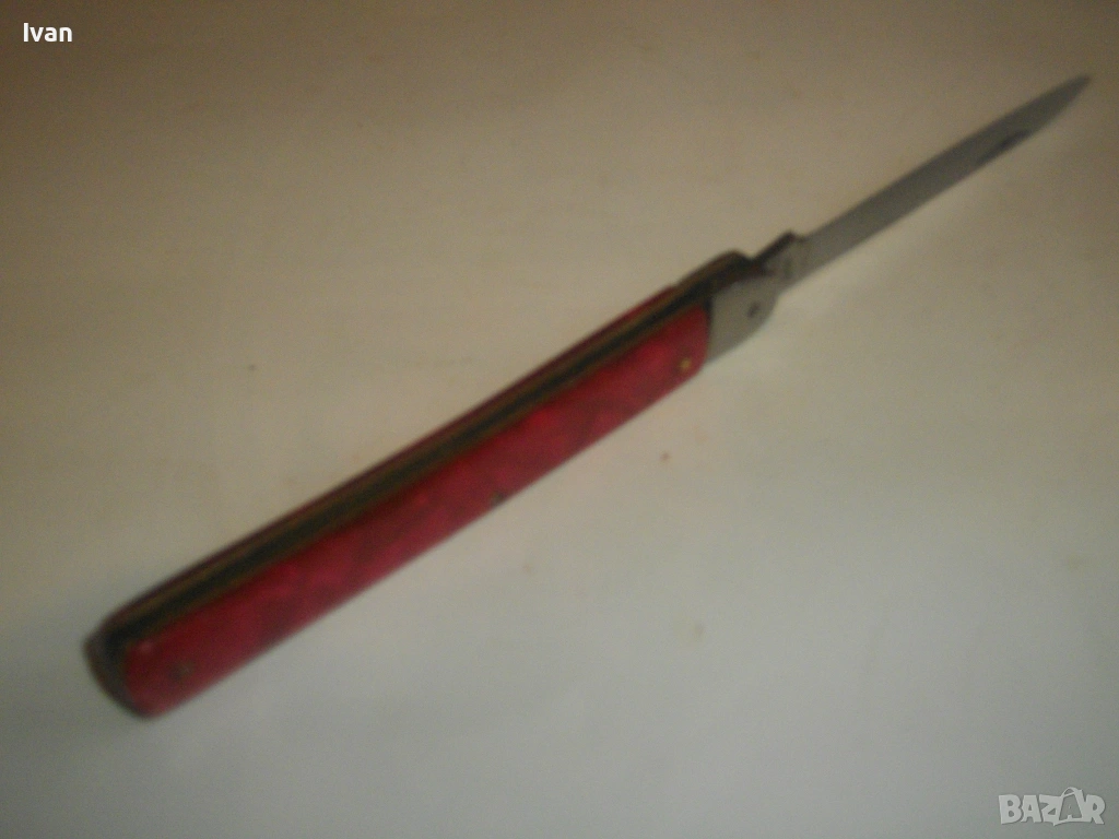 Българско Соц ножче ножка джобно туристическо 18,5 см с дръжка от червен каталин