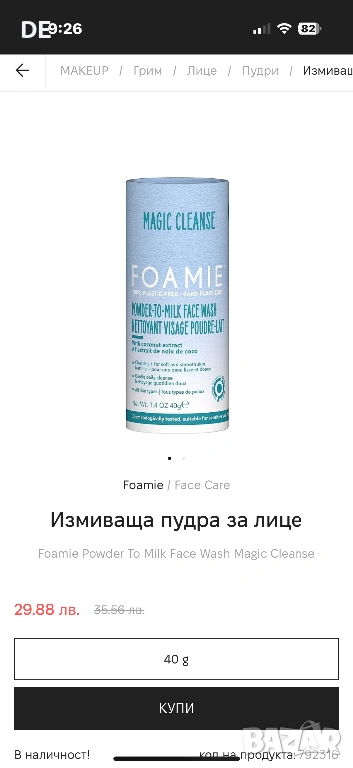 Измивна пудра за лице, снимка 1 - Козметика за лице - 53420337 1/1