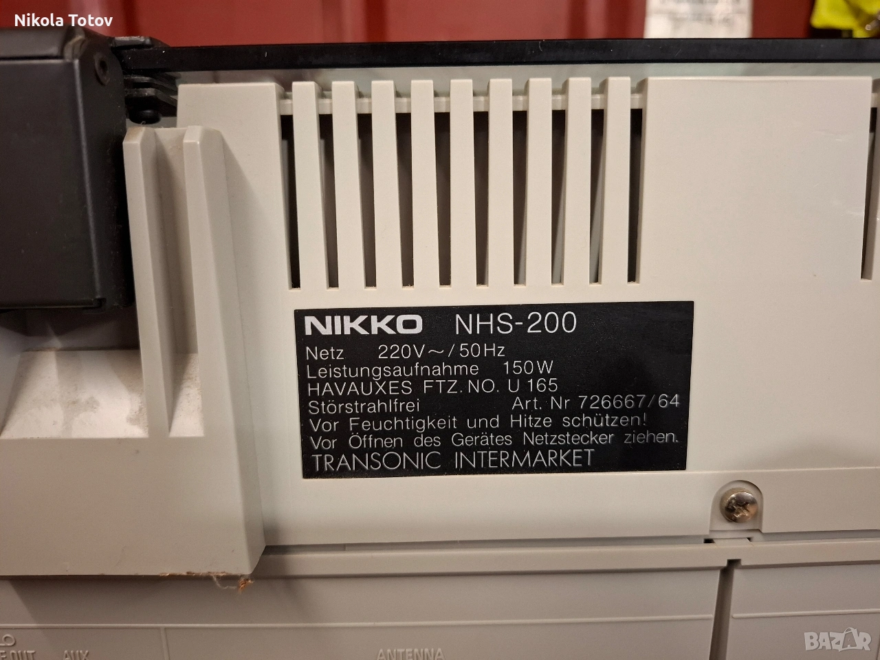 Продава се система на Nikko със собствен шкаф. Моделът на системата е NHS-200. Шкафът е в добро състояние. На колелца е . Има и поставка за плочи. Радиото на системата работи . Касетата не тръгва . Моторчето на грамофона върти ,но ремъка е разкапан . Дозата също е много хубава модела и е Ortofon SG5. Налична е и книжката . Системата не е отваряна и е в оригиналния си вид. Внос от Германия . Иска да се профилактира. Има леки забележки по лицевия панел. Продава се без тонколоните,защото такива не са налични. Състоянието се вижда на снимките . Намира се в Пловдив. Цена 150евро . За повече информация и снимки ми пишете на лс или звъннете на посочения номер 089 692 8376.