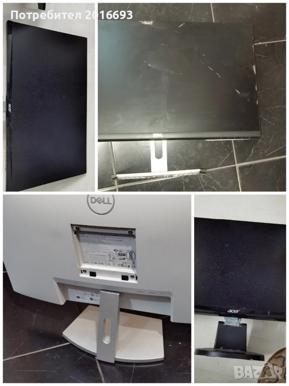 DELL 24 инча със счупен дисплей.ACER 27 инча без рамков.Липсва траф -загубено захранване.Цена за двата монитора 10 евро