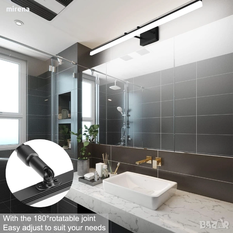 60 см Модерно черно осветително тяло за баня Регулируемо Въртящо 5500К