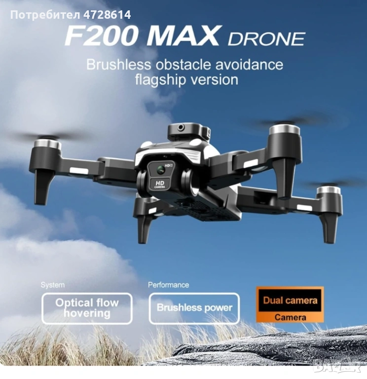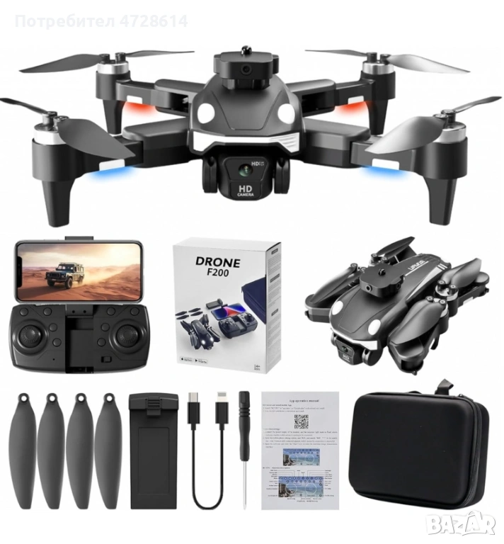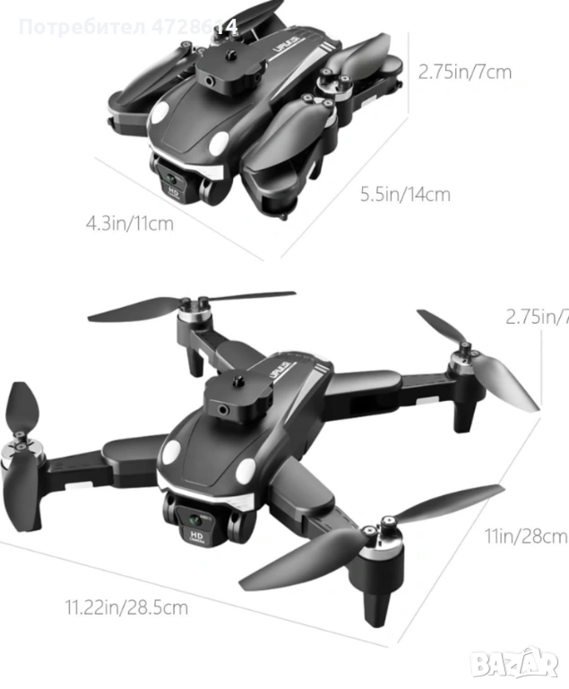 Материали: Пластмаса, метал, електронни компоненти; Цвят: Черен; Честота: 2.4G; Мотор: Безчетков мотор за по-голяма издръжливост и ефективност; Устойчивост на вятър: Ниво 7; Камера: 4K HD, ръчно регулируема до 90 градуса; Канали: 4CH; Подходяща възраст: 14+; Батерия: 3.7V 1800mAh lipo; Време за зареждане: 90 минути; Време на полет: Около 12 минути; Обхват на дистанционното управление: До 150 метра; Разстояние за предаване на изображението: До 150 метра; Сигнал за предаване на изображение: WiFi; Режим на зареждане: USB кабел за зареждане; Разгънат: 28,5x28x7 см (11,2x11x2,76 инча); Сгънат: 11x14x7 см (14.3x5.5x2.76 инча); Опаковка: 22x17x8 см (38.7x6.7x3.15 инча); Тегло: 349 г (0.7 lb).