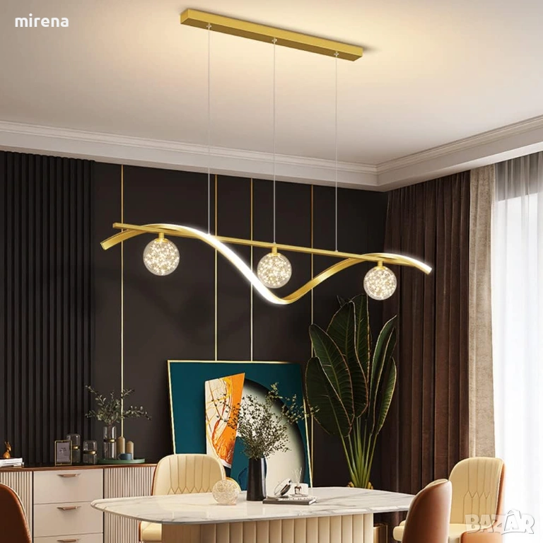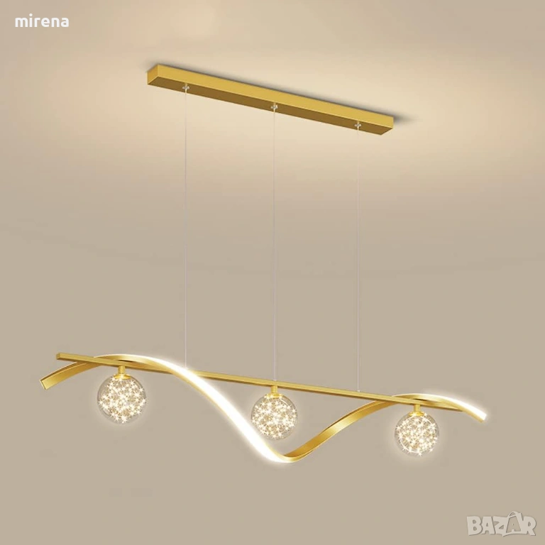 Лампи Nordic Метална лента Висяща лампа LED Димируем полилей Модерно Домашно Трапезарно Осветително тяло За Вътрешен Кухненски Остров Стъклен Таван Висяща Лампа Злато Просперосна