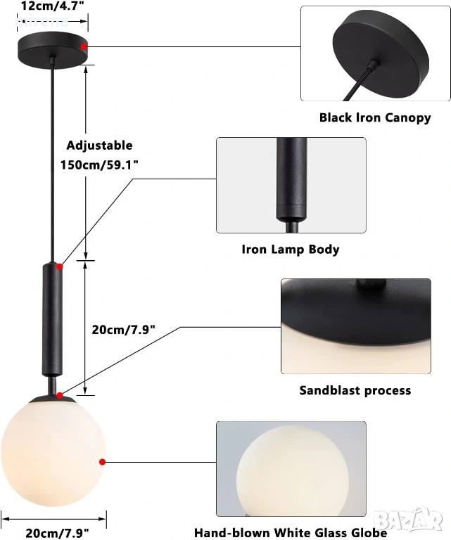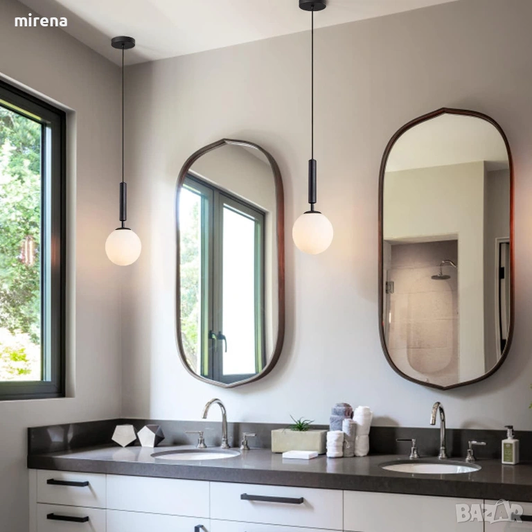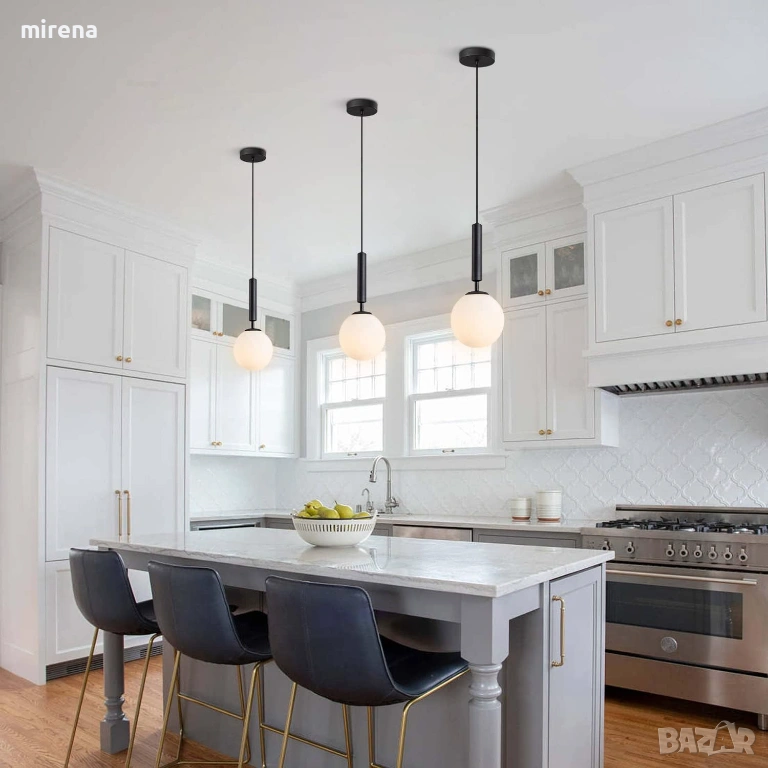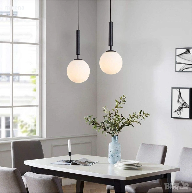 【Широка употреба за всякакво място】Бялата висяща лампа с млечна сфера е класическа и минималистична, идеална за различни пространства, като спалня, кухня, хол, коридор, трапезария, барове, баня или гардероб. Сферичната висяща лампа ще освети пространството и ще подобри декора, добавяйки стил и интерес към всяка стая.