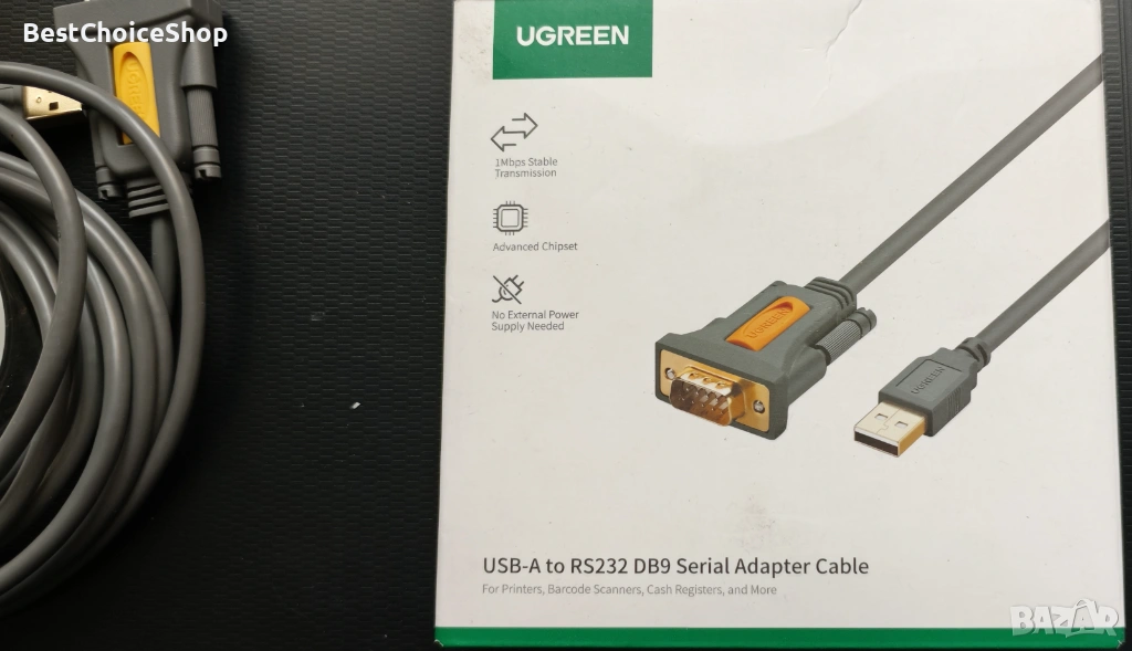 Оригинален UGREEN USB-A to RS232 DB9 Serial Adapter Cable – надеждно решение за свързване на устройства със сериен порт към компютър чрез USB.