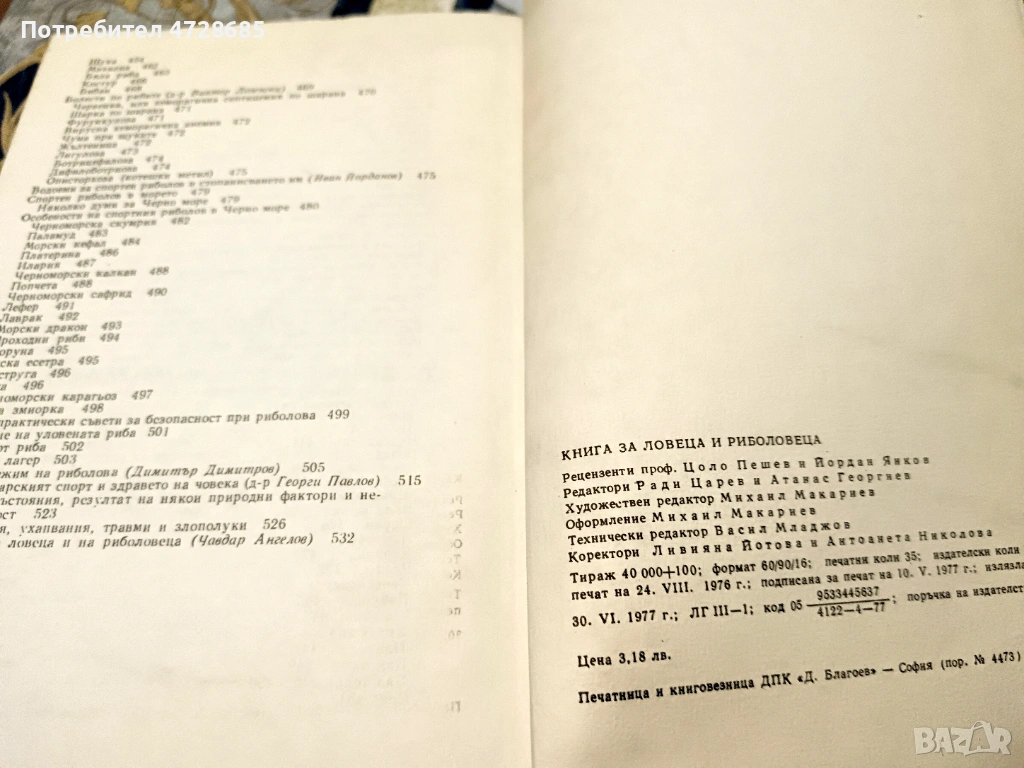 Ради Царев – 1977г., Земиздат, 560стр., добро състояние – с енциклопедичен характер - богато илюстрирана – цена €20 - съвременният ловец и риболовец ще намери всичко във връзка с: