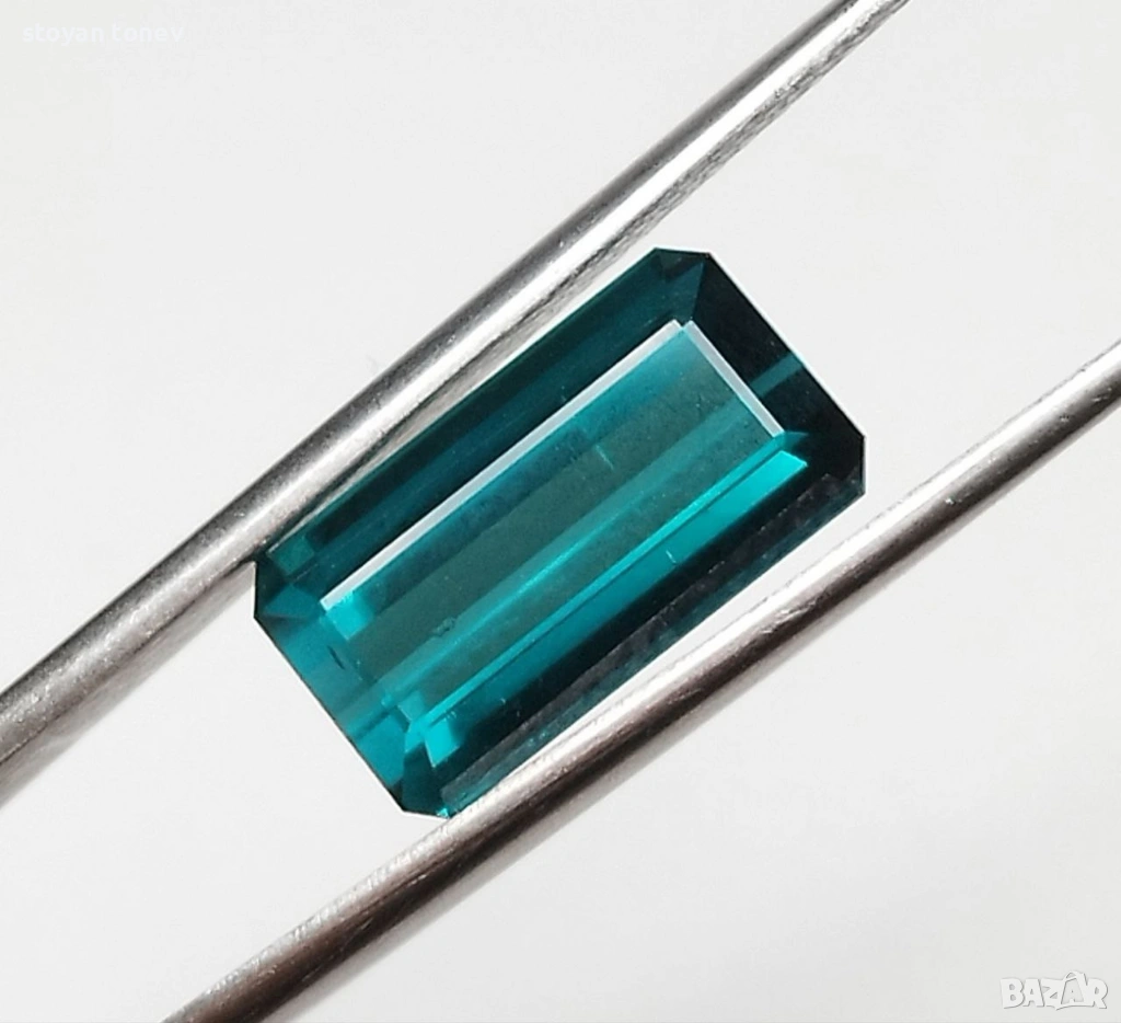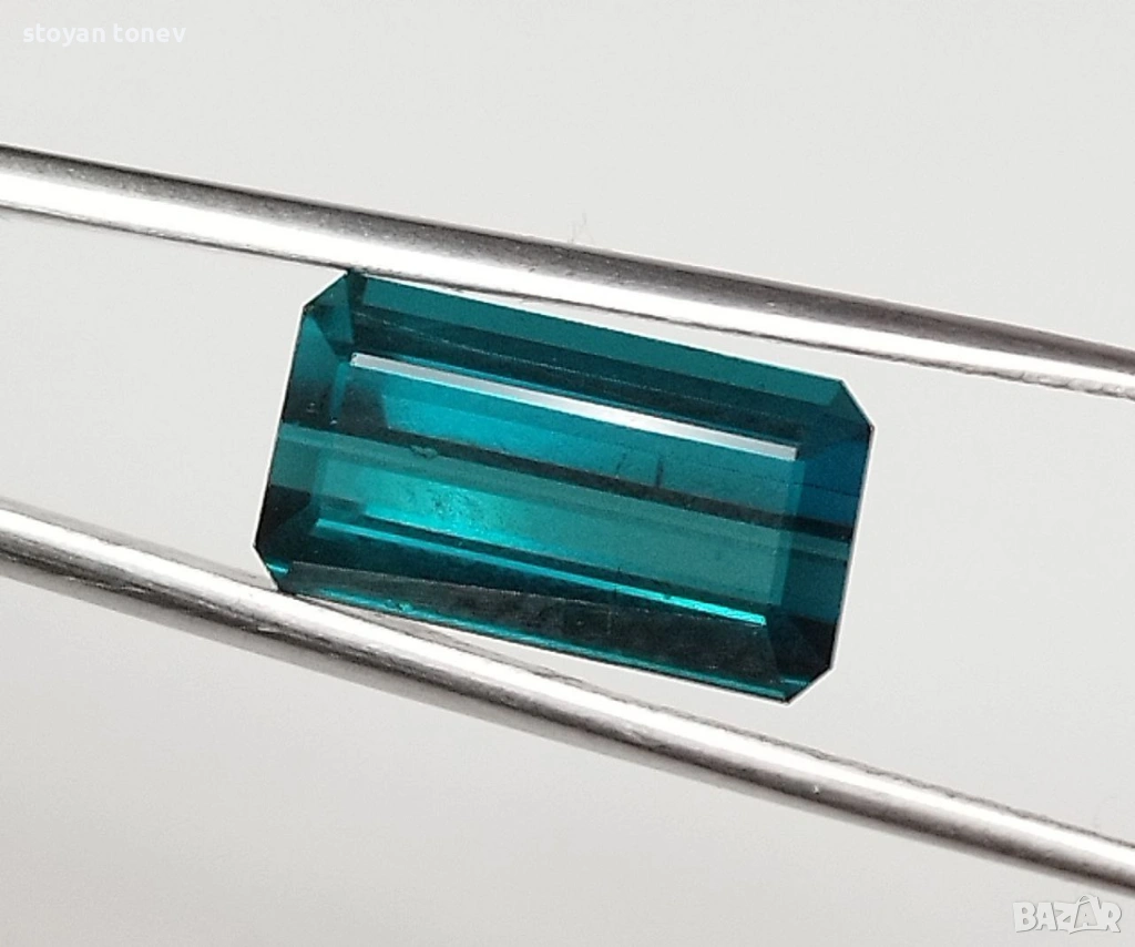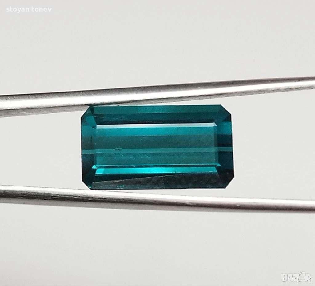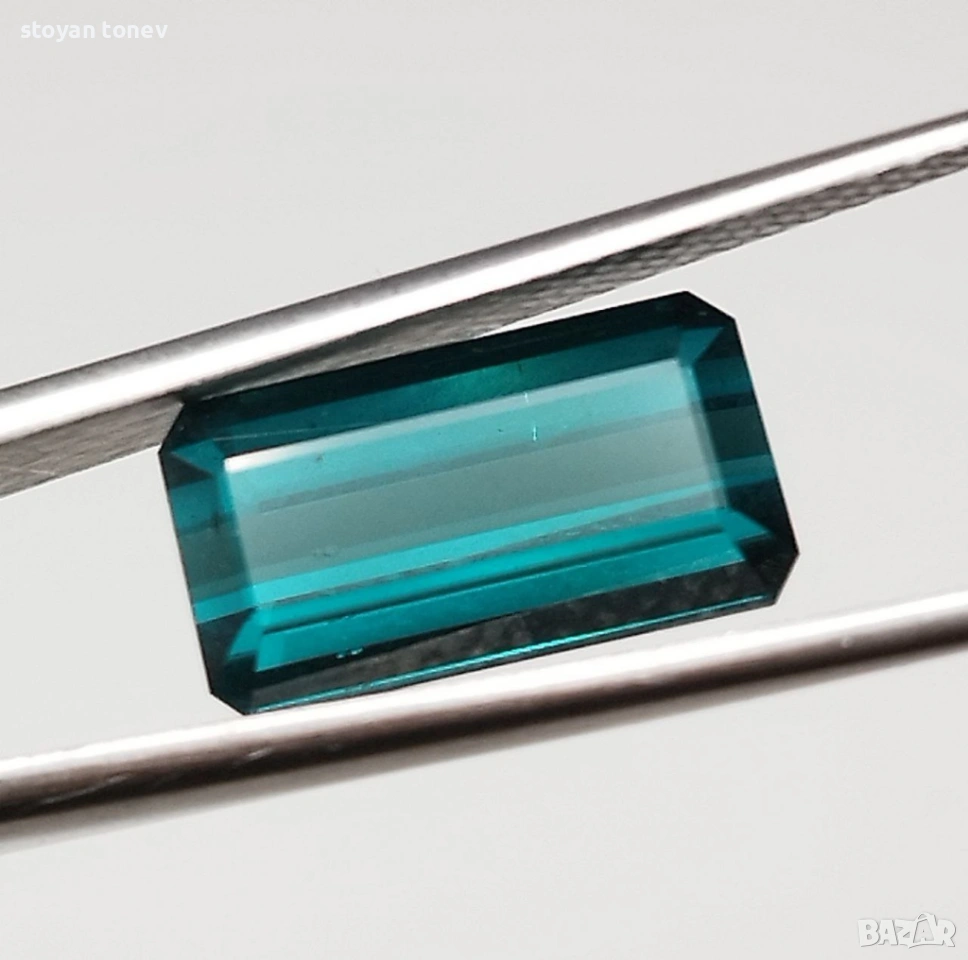 Естествен турмалин с тегло 3.19кт и произход Африка. Чистота VVS без видими включения. Цвят зелено син. Форма октагон с размери:11.34 x 6.20 x 4.68 mm.