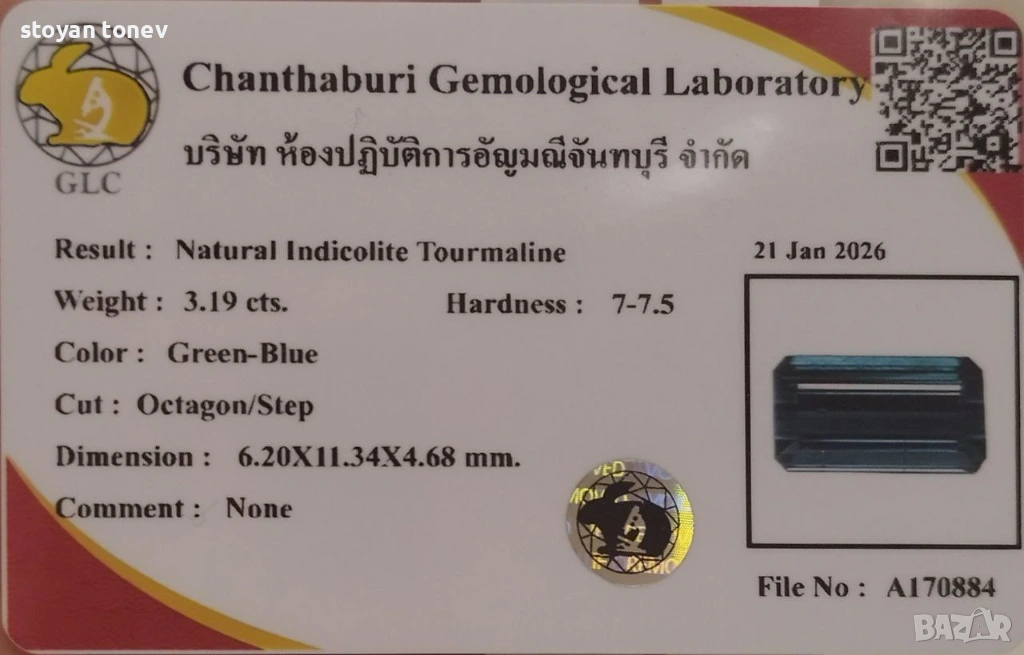Изключителен чист зелено син индиголин турмалин 3.19кт.! Сертифициран! нов!