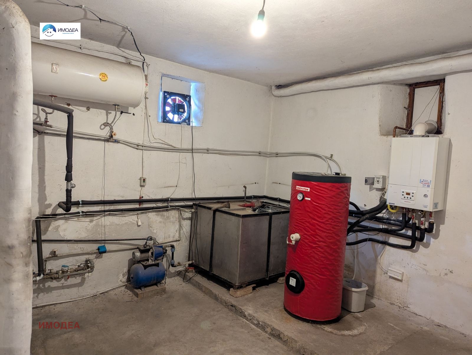 Отоплението е решено с комбинирана система локално парно с котли на ток, газ и пелети, допълнено от климатици. Осигурена е и топла вода чрез бойлер със соларни панели. Имотът се продава напълно обзаведен и оборудван, в много добро състояние.