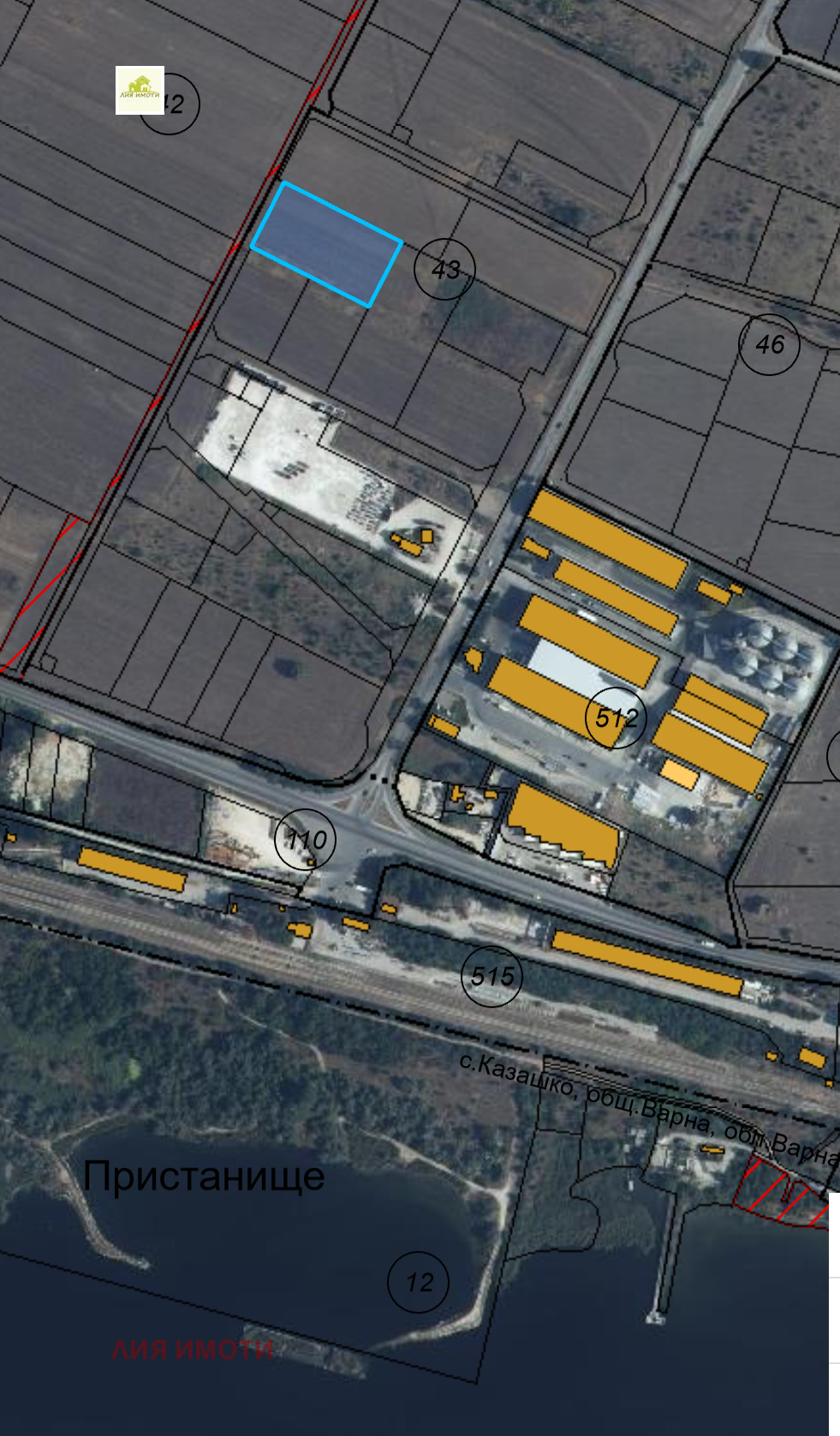 ЛИЯ ИМОТИ Ви предлага ексклузивно за продажба парцел подходящ за промишлено строителство, производство или складове с площ 4560 кв.м. За имотът има изготвен ПУП, със следните параметри на застрояване: плътност 70 %, кинт 2,4, озеленяване 20 %. Парцелът е разположен на метри от вече изградени складови и промишлени сгради, близо до пристанището.