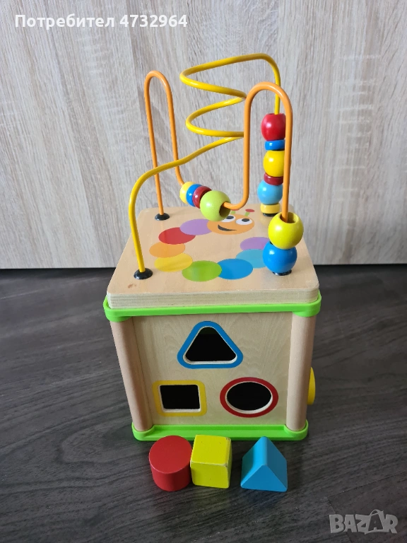 Интерактивен дървен куб за развиване на фината моторика. В добро състояние.