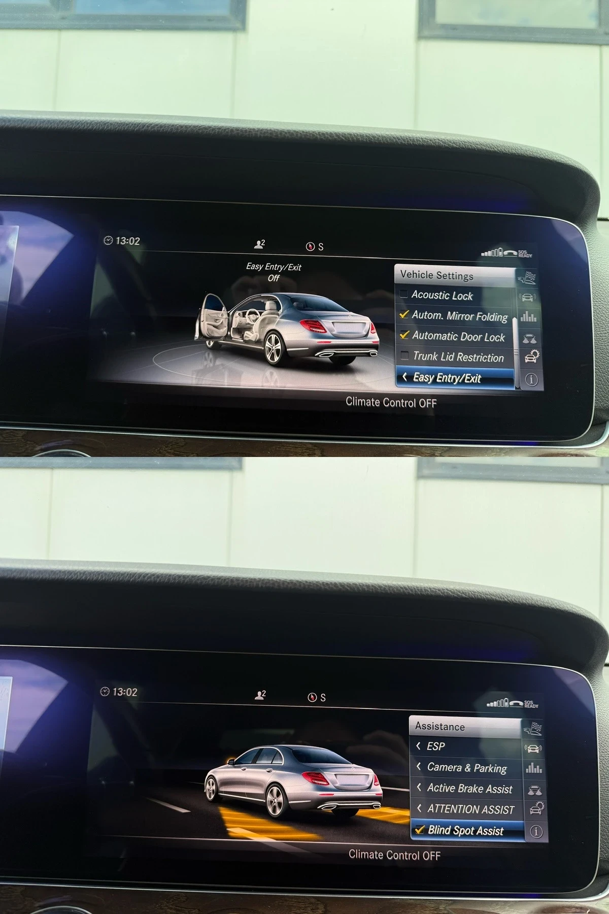 Гарантирани Реални Километри! Mercedes-Benz E300 задно задвижване! Keyless Go Музика Burmester Ел. Затъмняващи се огледала AMG пакет, AMG меню Старт/Стоп система Амбиентно осветление 5 режима на шофиране - Eco, Comfort, Sport, Sport+, Individual (може да се настрои само ръчно да сменя скорости) Дигитално табло Електрически седалки с: Памет, подгрев и надуване на седалки. Новия мултифункционален волан с тъч и физически бутони + пера. Завиващи и автоматични Multibeam LED фарове 19 оригинални AMG джанти Черен тава Панорама 360 градуса камери на цялата кола Навигация, CarPlay Cruise Control, Парктроник Асистент за Автоматично паркиране (паркира сама) Асистент за предотвратяване на челен сблъсък 9G-tronic, 9 скорости Асистент за следене на коли в мъртвата точка Електрически багажник с вакуум Отваряне на багажника с крак И най-вероятно има още екстри, които изпускам Току що обслужена! Колата се кара всеки ден, карам я предимно извънградско. С всичко платено + пълно автокаско! Възможен е оглед след предварителна уговорка!