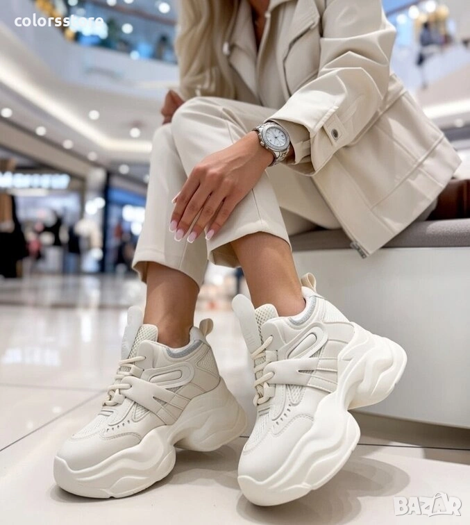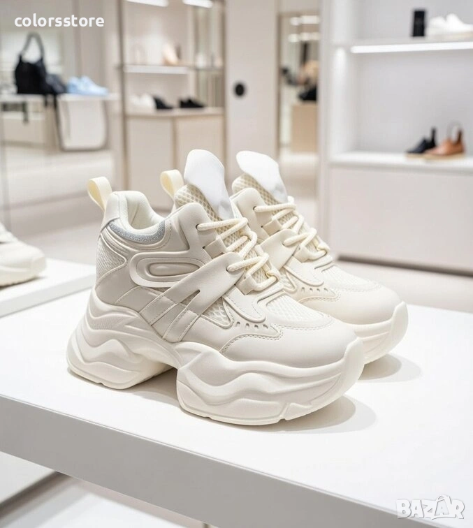 Кецове на платформа - бежова кожа и мрежа - 3AL103