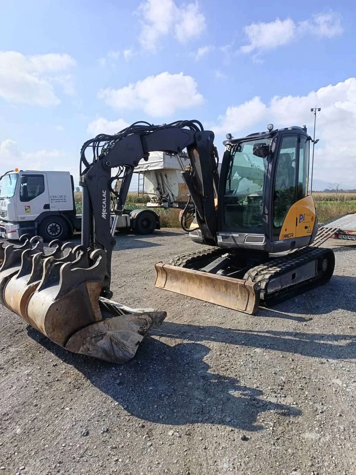 Гумено - верижен багер товарач MECALAC 6MCR, оперативно тегло 5700 кг. Двигател DEUTZ TD 2. 9 L4 55. 4 kW, 75hp, 2300 rpm, 4 цилиндъра, водно охлаждане. БЕЗ Ad BLUE и DPF филтър! Автоматично понижаване на оборотите на двигателя AUTOMATIC ENGINE LOW IDLE. Задвижване - DUAL SENSO DRIVE HYDROSTATIC transmission. Скорост на придвижване 0 - 10 км/час. Гумени вериги 400 мм (на 800 работни часа). Хидравлична система тип Load Sensing - Flow Sharing тип LUDV главно управление. Два типа управление посредством джойстици - тип мини челен товарач и стандартно тип верижен багер. Промяна на посоката на движение от джойстика при режим на товарач LOADER MODE. Въртене на купола с педал. Тройна OFFSET стрела с 4 защитни клапана и геометрия в габаритите на машината при въртене. Хидравличен бързосменник MECALAC CONNECT с управление от кабината и сензор за неправилно заключване. Товарачна кофа с ширина 2040 мм (обем 490 л). Багерна кофа с ширина 900 мм (обем 300 л). Багерна кофа с ширина 600 мм (обем 185 л). Багерна кофа с ширина 450 мм (обем 130 л). КЛИМАТИК. TELEMATIC - система за пълен мониторинг на багера. Линия за чук и допълнително хидравлично оборудване, вградена в десния джойстик. Предни и задни работни светлини. Козирка за дъжд със сенник. Звуков сигнал за движение на заден ход. Сигнална лампа. Регистрация в КТИ. Цялостна сервизна история машината е поддържана само в сервиза на представителя (Роланд Трейдинг). Единствена по рода си комбинирана машина с възможност за работа като багер, мини челен товарач, кран и мотокар с палетни вилици! Машината е в много добро състояние и работи всеки ден.