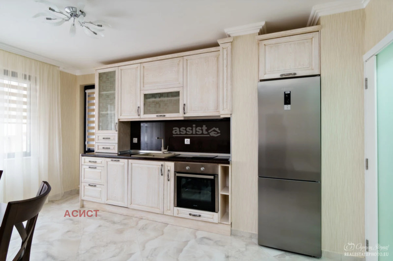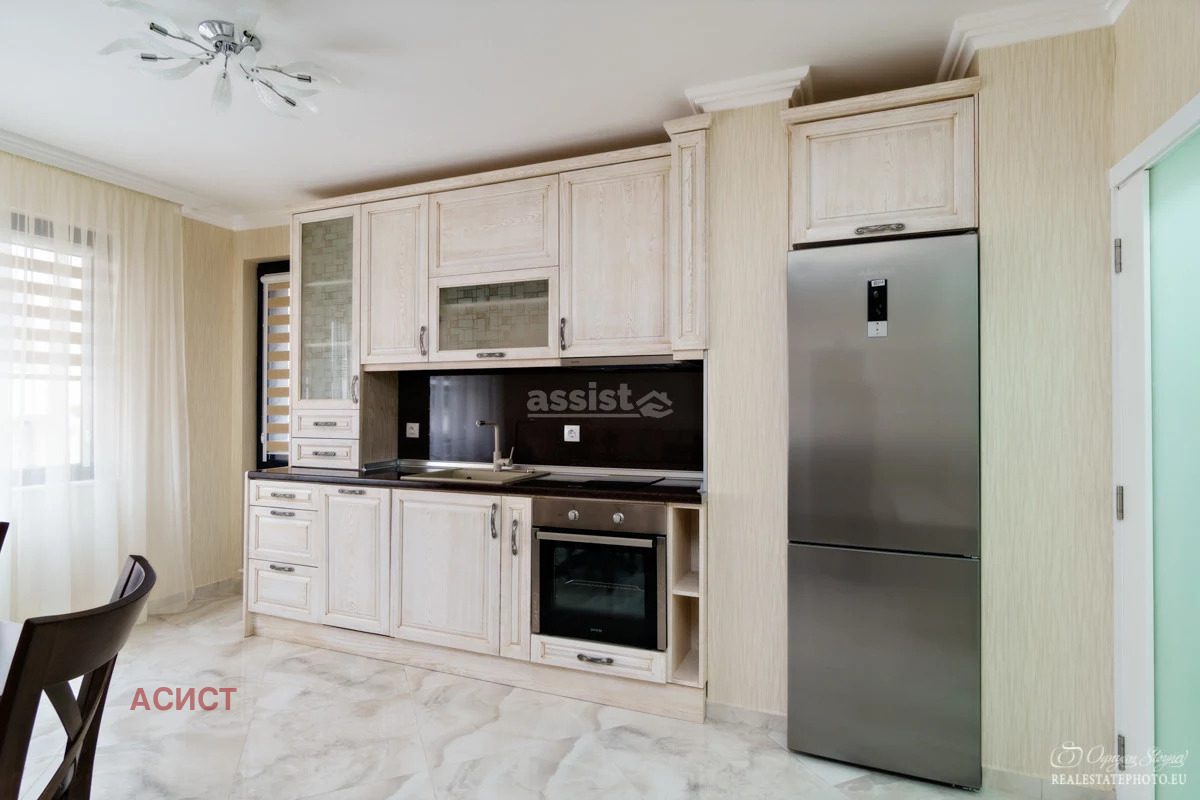 Жилището е разположено в нова и добре поддържана сграда и се отдава напълно обзаведено. Разпределението включва просторен хол с кухненски бокс и трапезария, отделна спалня, баня с тоалетна, коридор и тераса. Апартаментът е модерно и функционално обзаведен, оборудван с всички необходими електроуреди за едно домакинство.