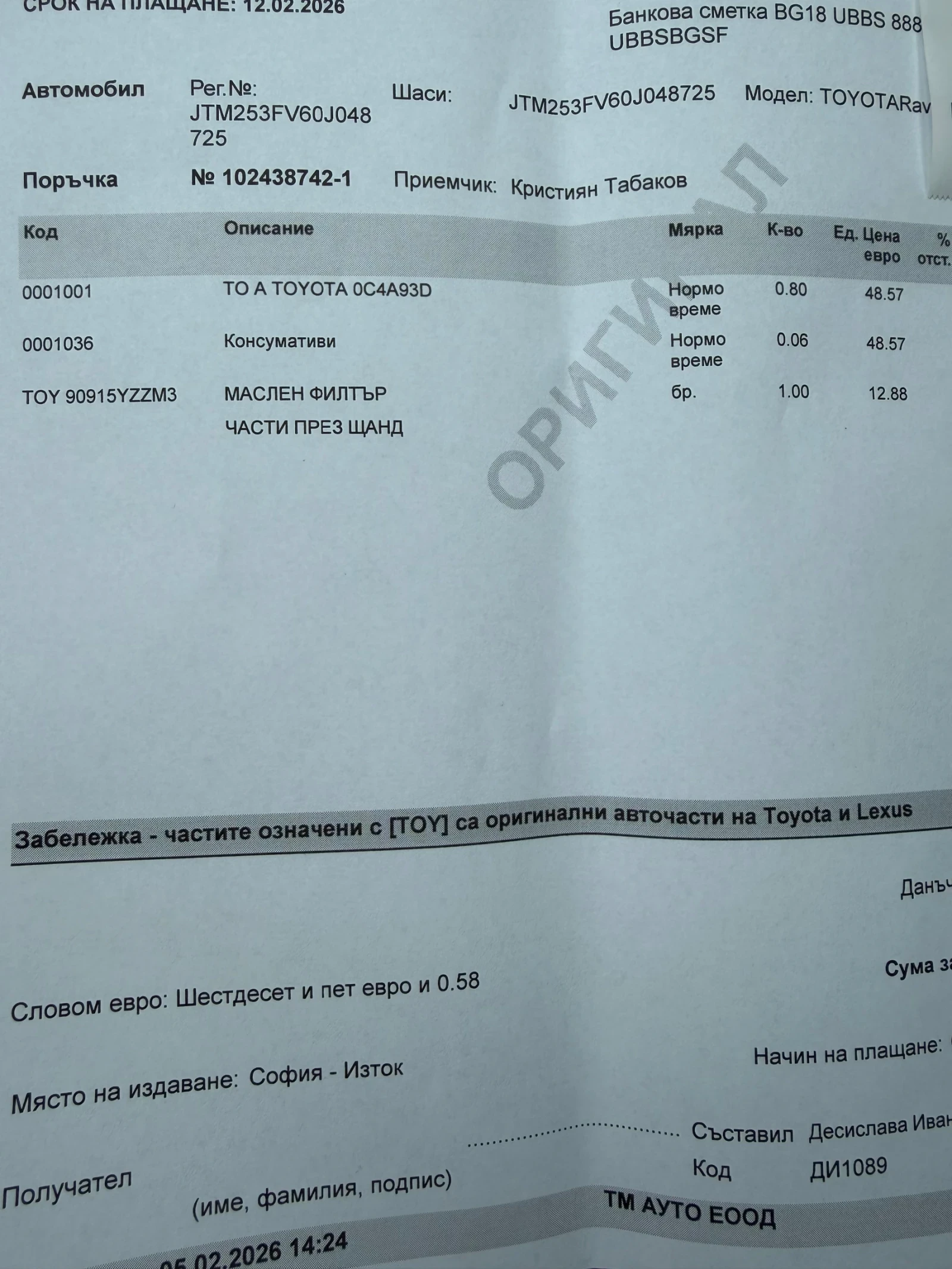 НОВ ВНОС от Германия! Салон в комбинация между текстил и кожа, 360 градусова камера, JBL, дигитално табло. Закупен от лицензиран представител на Toyota. Без забележки, както отвътре, така и отвън. Реални километри! Във фабрична гаранция до декември 2027г и възможност за удължаването ѝ до декември 2034г чрез програмата Toyota Relax (127. 50 лв. /година). _____ *Основни акценти - LED фарове - Навигационна система - Салон частична кожа - Алуминиеви джанти - Адаптивен круиз контрол (ACC) - Камера за паркиране - Автоматично превключване на къси/дълги светлини - Автоматичен климатик - Подгряване на волана - Подгряване на седалките - Аудиосистема - Технологичен пакет - Електрически регулируеми седалки *Оборудване - Затъмнени стъкла - Подлакътник - Кожен, мултифункционален и подгряващ се волан - Електрически стъкла - Електрически странични огледала - Електрически регулируеми седалки - Автоматично затъмняващо се вътрешно огледало за задно виждане - Подгряване на седалките - Централно заключване - Бордкомпютър - Пера за превключване на предавките от волана - Сервоуправление - Изцяло дигитално арматурно табло *Мултимедия и свързаност - Радио / тунер - Навигационна система - Bluetooth и handsfree - Гласово управление - USB порт *Климатизация - Двузонов автоматичен климатик - Осветление и екстериор - LED дневни светлини - LED основни фарове - LED фарове за мъгла - Система за почистване на фаровете - Покривни релси - Алуминиеви джанти - Асистенти и безопасност - Алармена система - ABS - Предупреждение за дистанция - Електронен имобилайзер - ESP - Ограничител на скоростта - ISOFIX - Сензор за светлина - Асистент за аварийно спиране - eCall система за автоматично спешно повикване - Сензор за дъжд - Контрол на налягането в гумите - Start/Stop система - Тракшън контрол - Разпознаване на пътни знаци - Адаптивен круиз контрол - Камера за паркиране - Предни и задни парктроници - Въздушни възглавници фронтални, странични и допълнителни _________ Автомобилът може да бъде видян в автосервиз по избор за района на гр. София или в ТМ Ауто - гр. София след предварителна уговорка. ____ Съдействаме с: - регистрация в КАТ; - внос на избрани от клиента автомобили от Европа /страни в ЕС/. - улеснена процедура при кандидатстване за лизинг при ОТП Лизинг /Банка ДСК/ * Колата се продава с два ключа и изрядна документация.