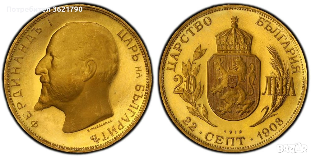 20 лева 1912 година България - рестрайк - сертифицирана → Обява 53423085