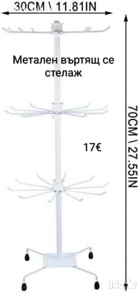 Малък вариант: Височина: 70 см, Диаметър: 30 см, Разстояние между нивата: 20 см - 17€