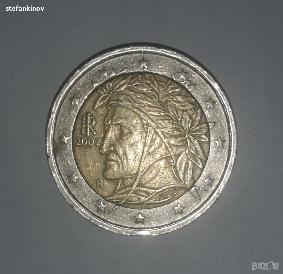 Италианска монета от 2 евро с лика на Данте Алигиери.