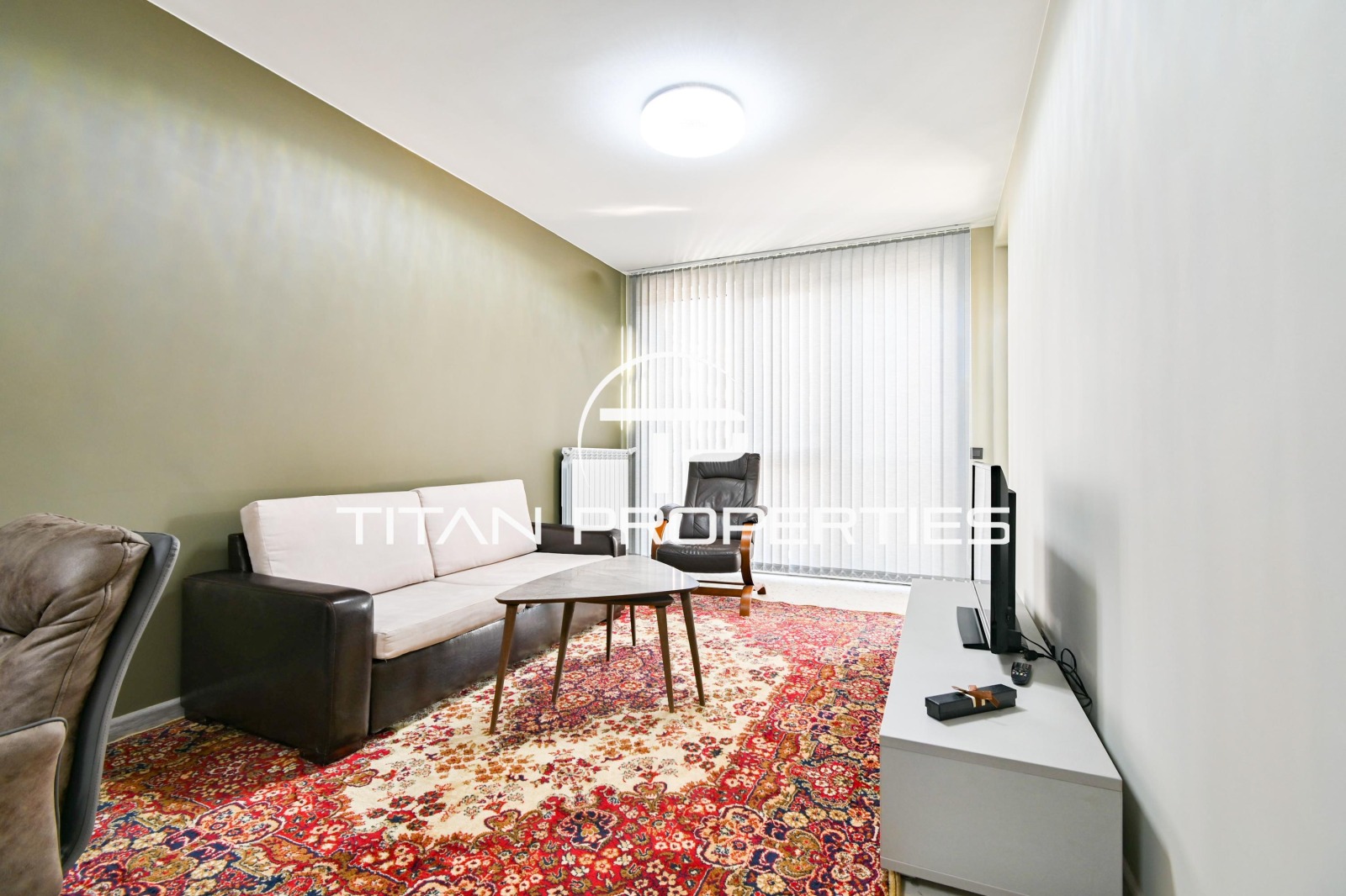 Титан Пропъртис - офис Младост с радост предлага на Вашето внимание тристаен апартамент под наем в кв. Кръстова вада, София. Апартаментът с площ 110 кв.м. е разположен на първи етаж в нова шестетажна сграда от 2022 г. Изложението е южно. Разпределението включва входно антре, хол с кухненски бокс, две спални и баня с тоалетна. Апартаментът е напълно обзаведен, отоплява се на газ.