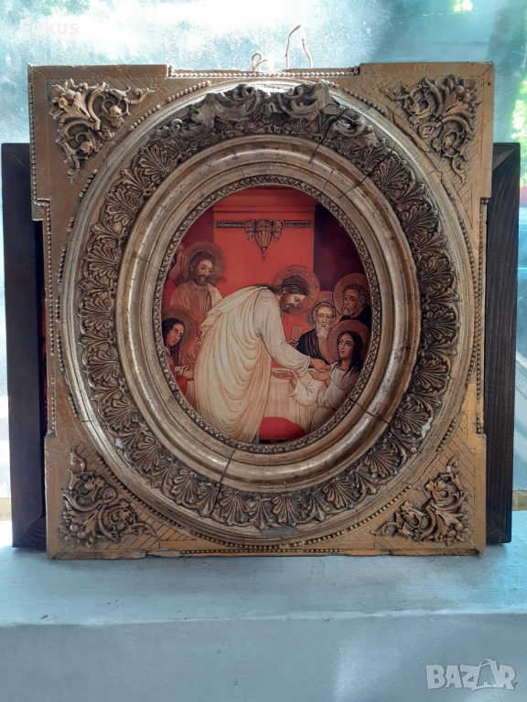 Продава се без иконата, която е нова и е снимана за да покаже ефекта който предава рамката на картината на която ще бъде поставена