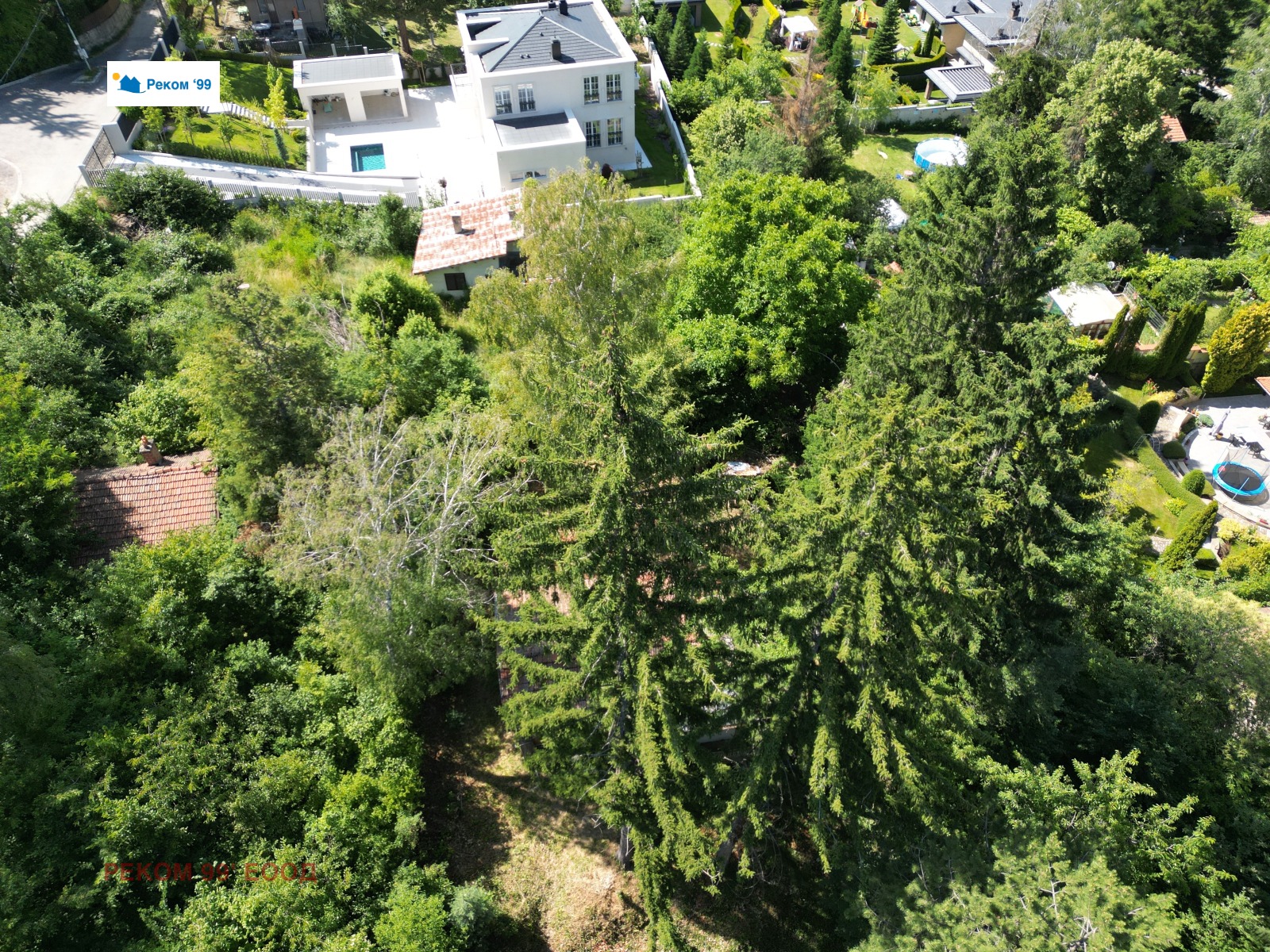 Реком99 продава БЕЗ АНАЛОГ урегулиран поземлен имот (УПИ) от 1240 кв.м. с вилна сграда - 49 кв.м.. Намира се в спокоен район с приятни съседи, лесен целогодишен достъп, близо до основни пътни артерии между постоянно населени елитни къщи. Просторен, слънчев, с правоъгълна форма, 25 метра лице - лека денивелация. Параметрите на застрояване, съчетават разнообразни бизнес интереси построяване на къщи, сграда, хотел или хармонично обитаване на настоящата вила.