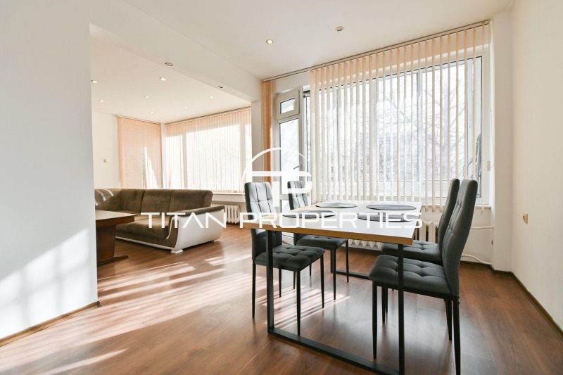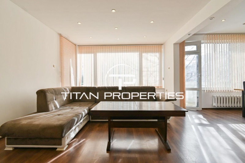 Титан Пропъртис - офис Младост с радост предлага на Вашето внимание четиристаен апартамент под наем в жк. Лозенец, София. Жилището с площ 108 кв.м е разположено на 5-и етаж в шестетажна тухлена сграда. С южно изложение помещенията са светли и приветливи. Разпределението включва хол с трапезария, отделна кухня, две спални, мокро помещение, баня с тоалетна и две тераси. Апартаментът е обзаведен и отоплява се на ТЕЦ.