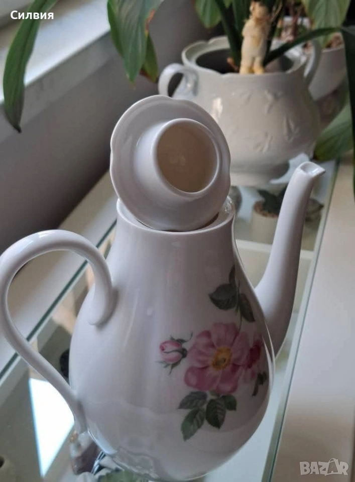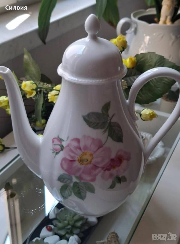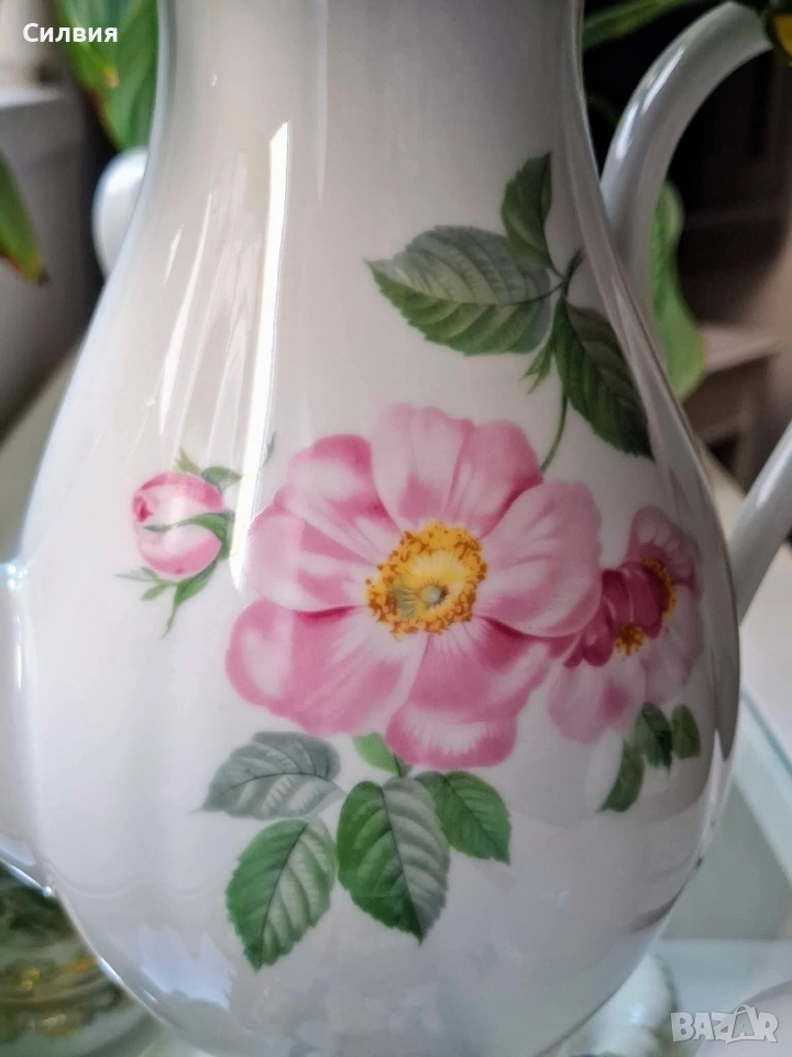 🍒Добавете нотка на изтънченост към дома си с тази изящна порцеланова кана/чайник, произведена от фабрика Н&Co Selb Bavaria. Моделът "Elisabeth" впечатлява с нежен флорален декор от двете страни розови цветове с деликатни листа, които носят усещане за романтика и стил.
