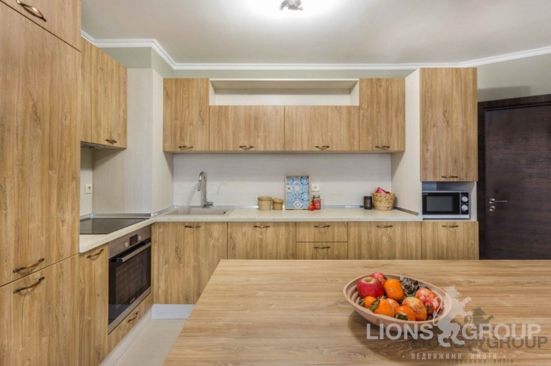 ♦ Апартаментът е луксозно и практично обзаведен с голям кухненски тракт 46кв.м, 3 спални, 2 бани, 2 тераси. Всички мебели и уреди са от най-високо качество, включително климатици Daikin, телевизори и озвучителна система на JBL. А кухнята разполага с вграден хладилник на Liebherr и допълнителен такъв в кухненският остров.
