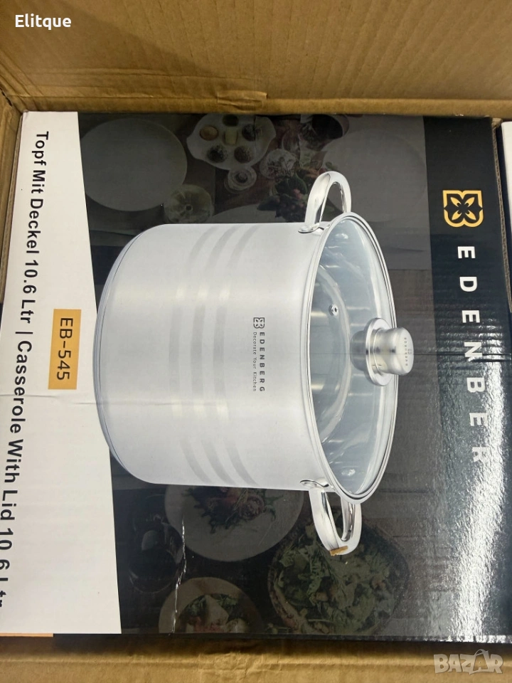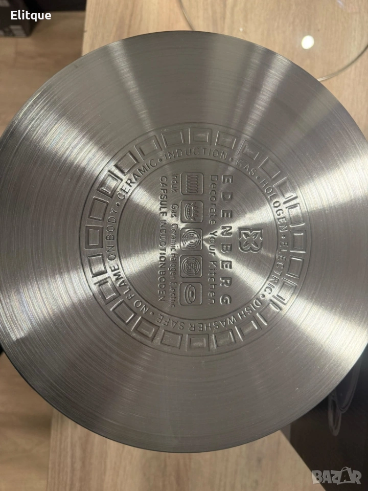 Тенджера Edenberg от неръждаема стомана и многослойно дъно Ключови технически детайли, които ще ви помогнат да изберете точната тенджера за вашето домакинство: Материал: неръждаема стомана — устойчивост и лесно почистване. Дъно: многослойно за оптимална топлопроводимост и равномерно готвене. Капак: закалено стъкло с отвор за пара. Съвместимост: всички котлони, включително индукционни. Размери и вместимост: 22 см — 6.8 л; 24 см — 8.6 л; 26 см — 10.6 л; 28 см — 12.9 л; 30 см — 15.5 л.