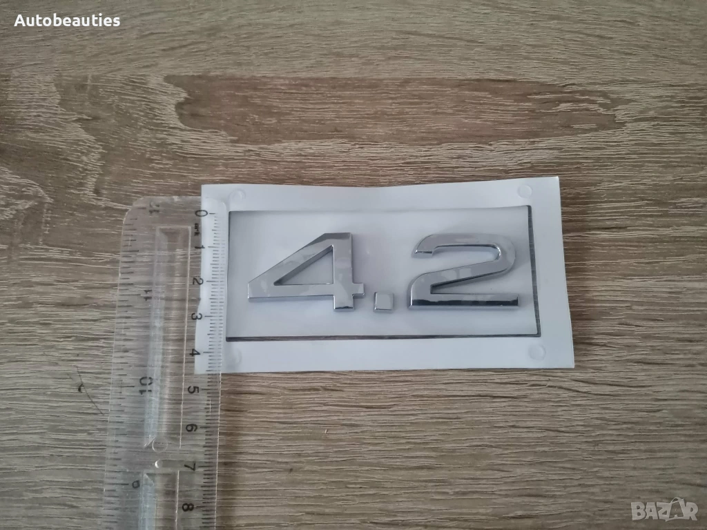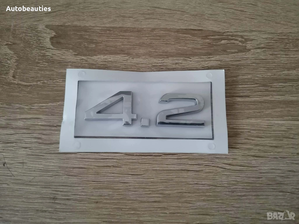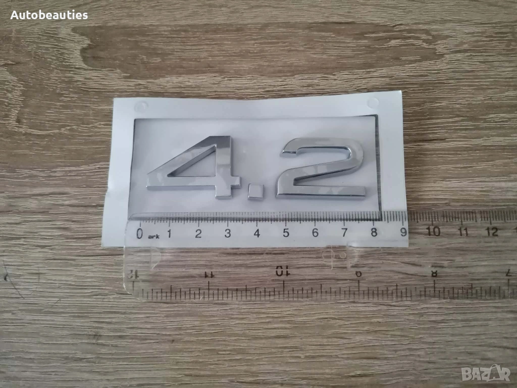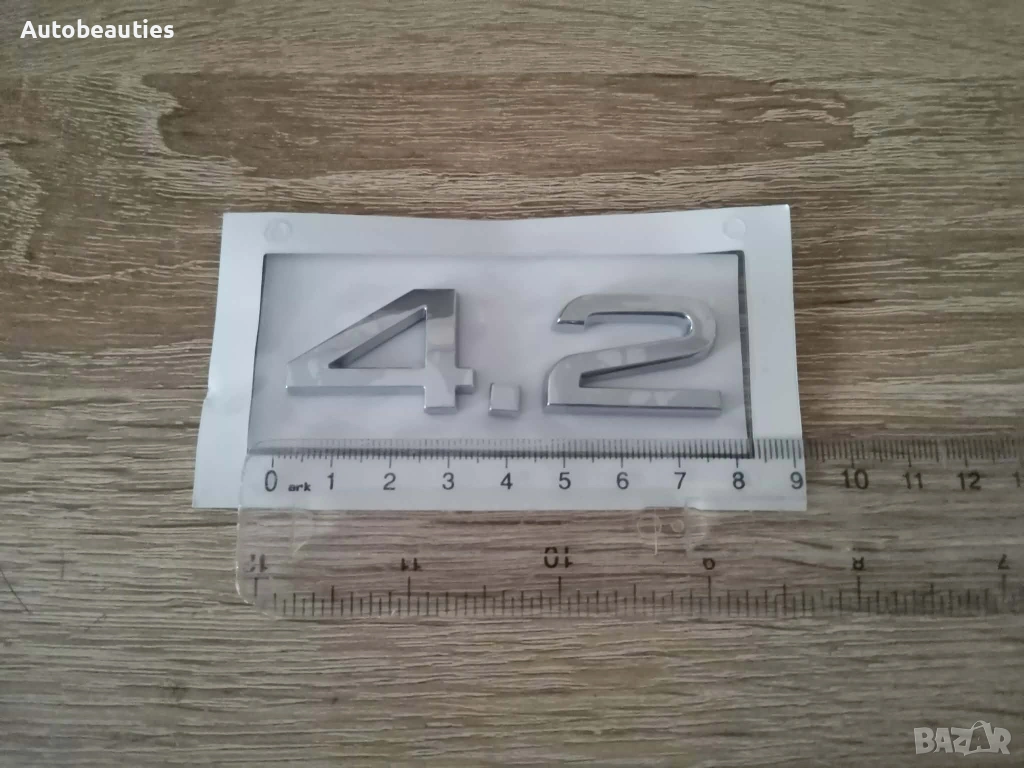 нова емблема 4.2 за Audi в сребристо. Размерите са дадени на снимките