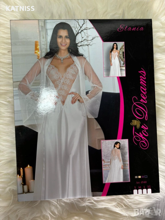 Копринена нощница със халат 2 части, снимка 1 - Бельо - 53424192 1/1